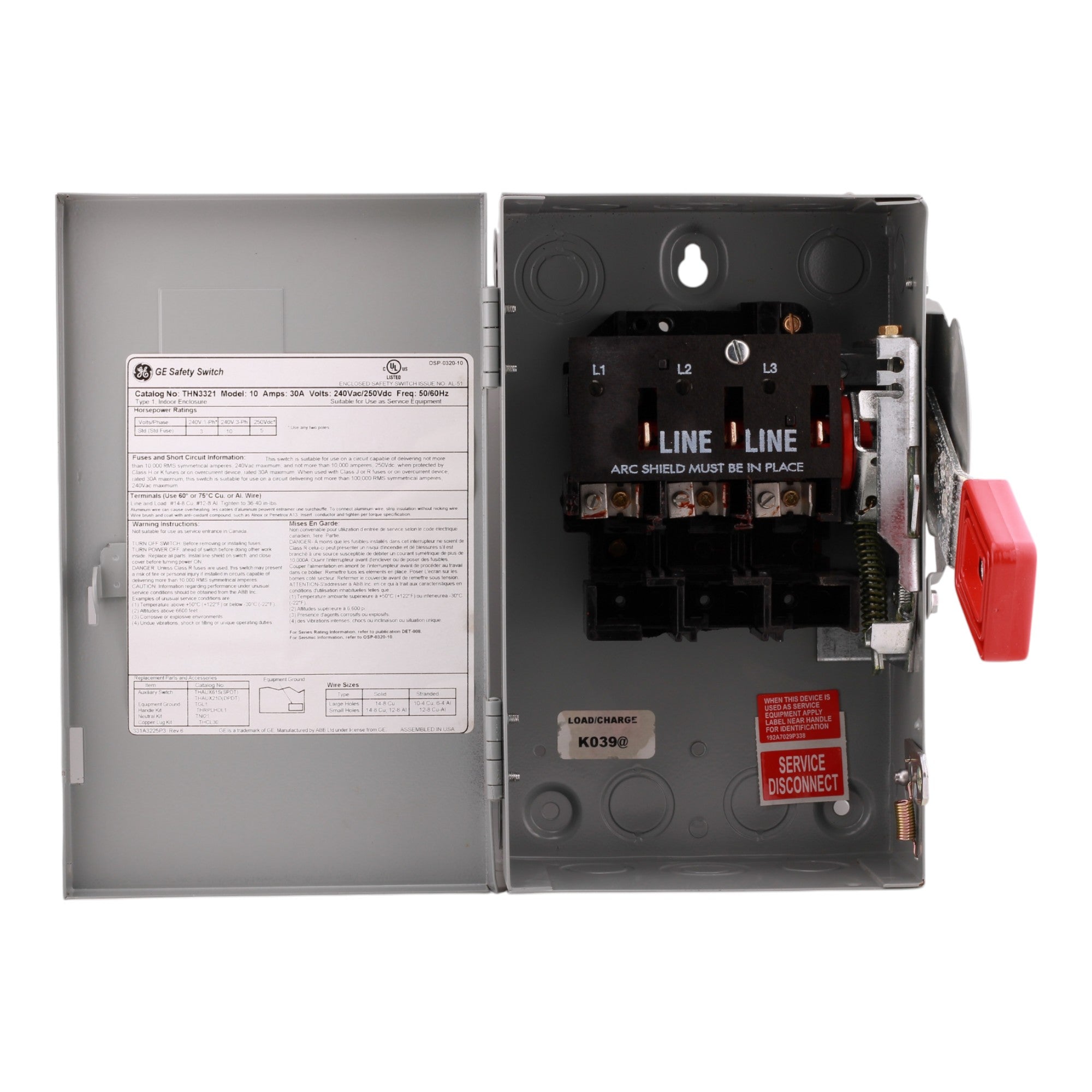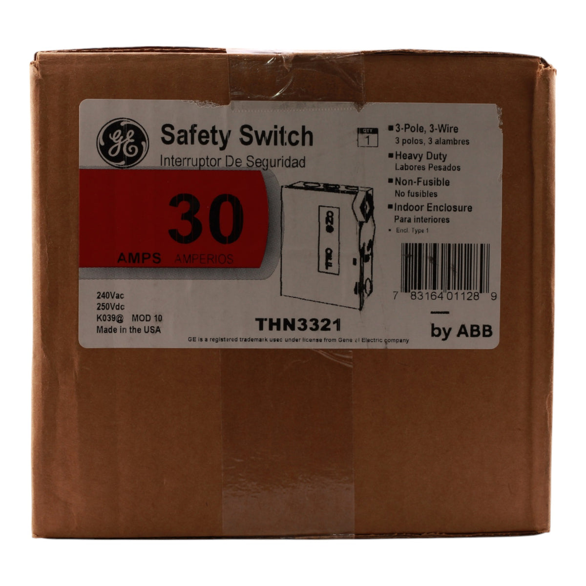 ABB THN3321: 30 Amp 3-Pole Non-Fused Heavy Duty Safety Switch, 240V, NEMA 1 Indoor, 10 hp 3-Phase, UL Listed.