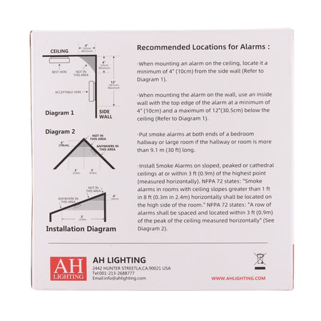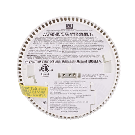 This AH Lighting AH562-A hardwire photoelectric smoke alarm delivers reliable 120V AC smoke detection with 9V battery backup for residential and light commercial applications. With multi-criteria optical sensing, wired interconnection for up to 12 units, and UL217 certification, it ensures enhanced fire safety for ceiling or wall installations.