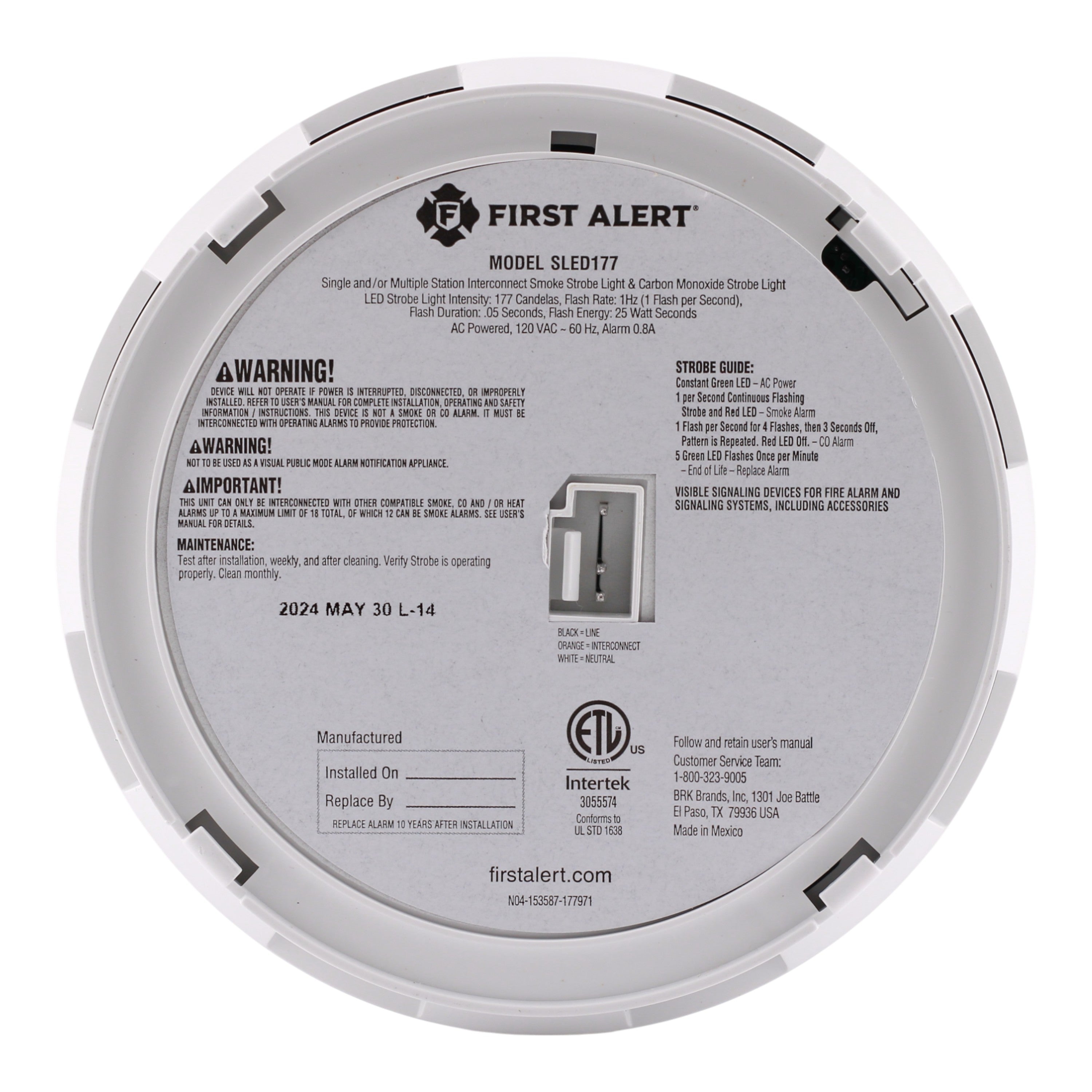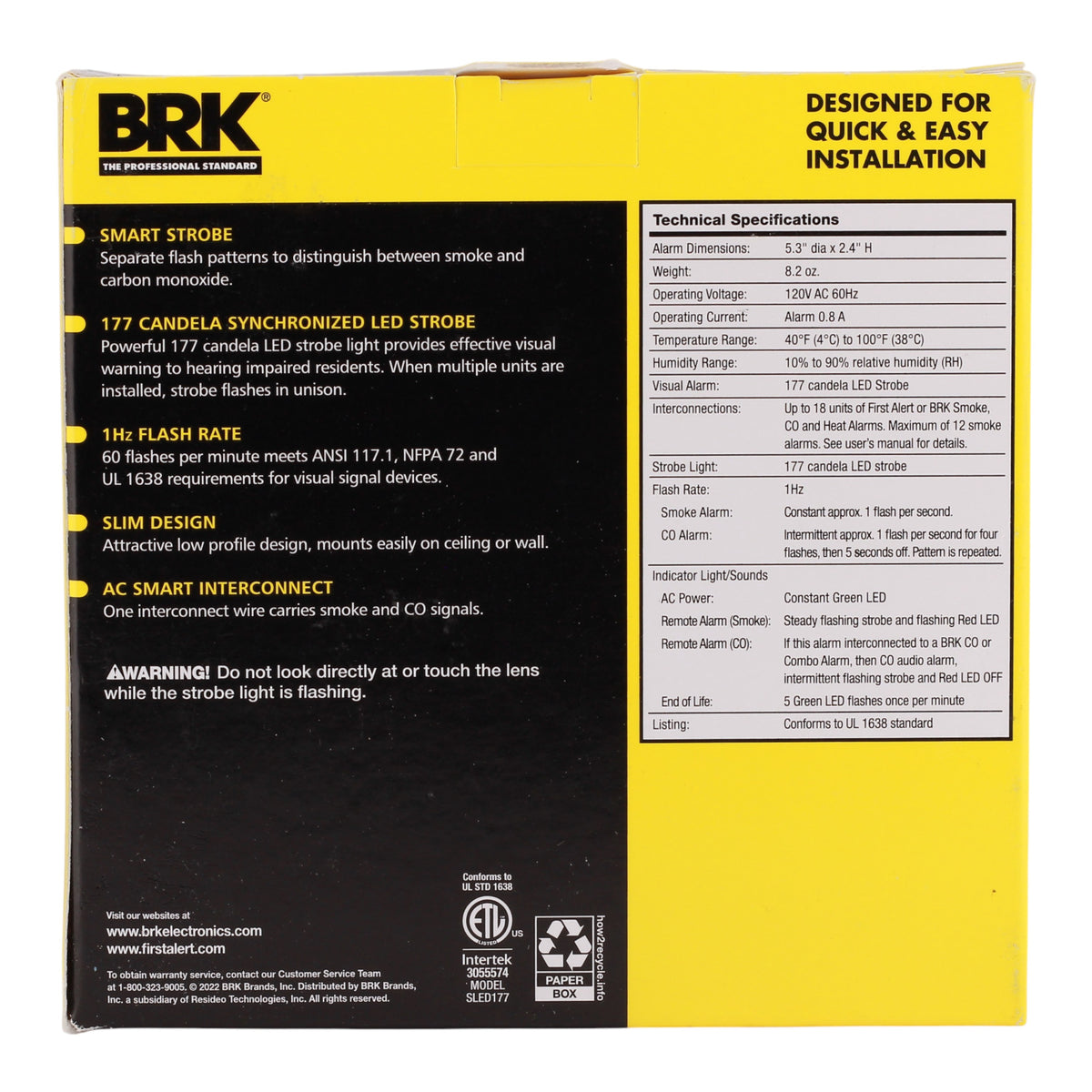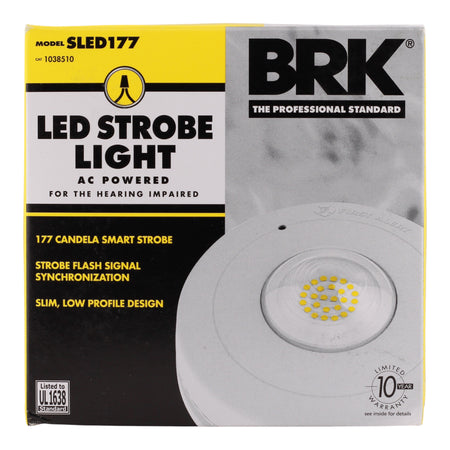 BRK SLED177: 177 Candela LED Strobe Light, 120 Volts AC, hardwired signaling device, dual flash patterns for smoke and CO alarms, synchronization capable, UL 1638 listed.