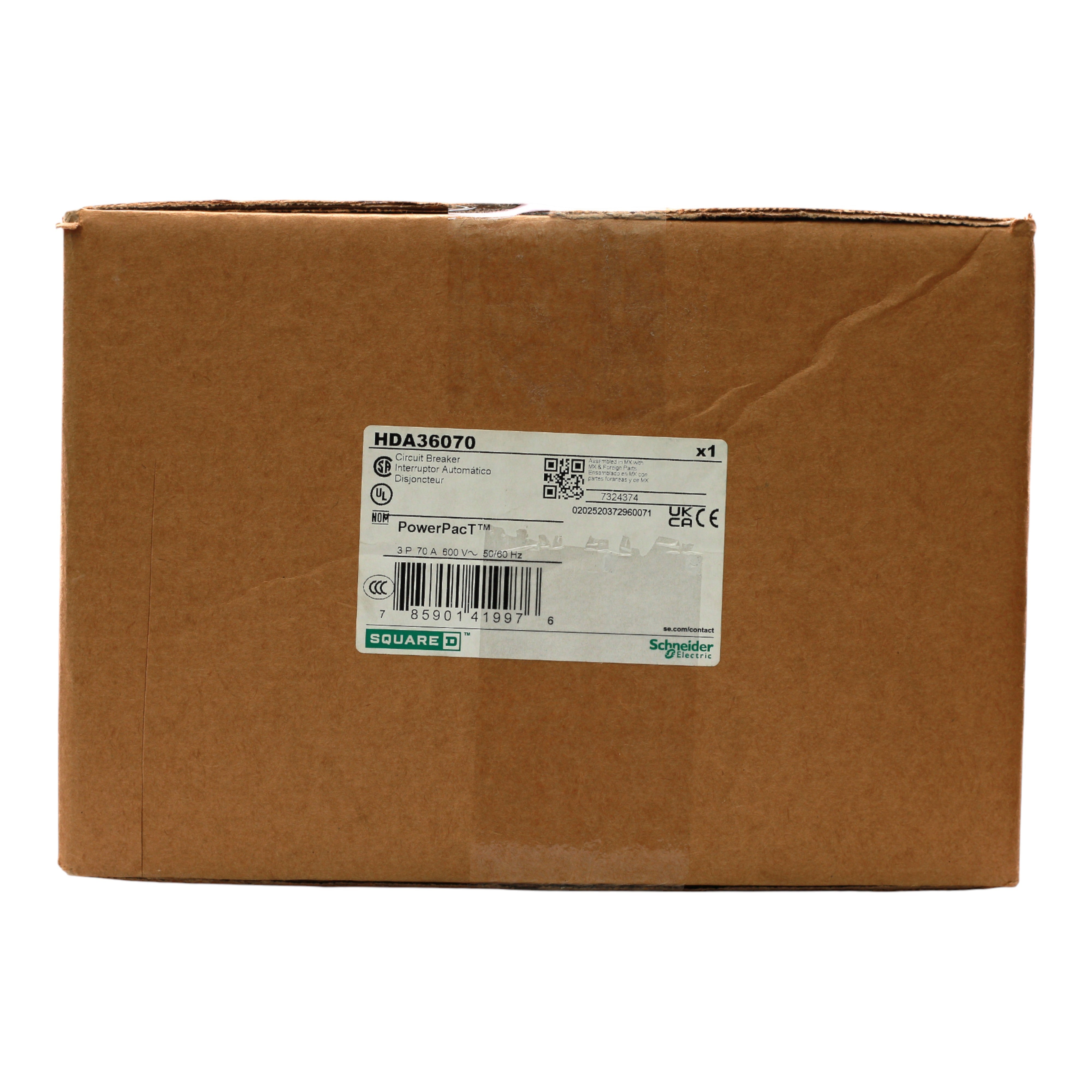 This Square D PowerPacT H HDA36070 circuit breaker provides reliable 70A, 3-pole thermal-magnetic protection for 600VAC circuits in PowerPacT H loadcenters. With a 14kA interrupting capacity and I-Line mounting, it ensures robust performance and easy installation for commercial and industrial applications.