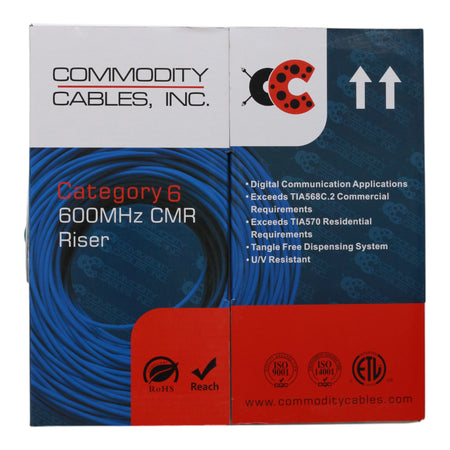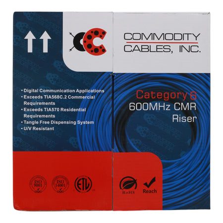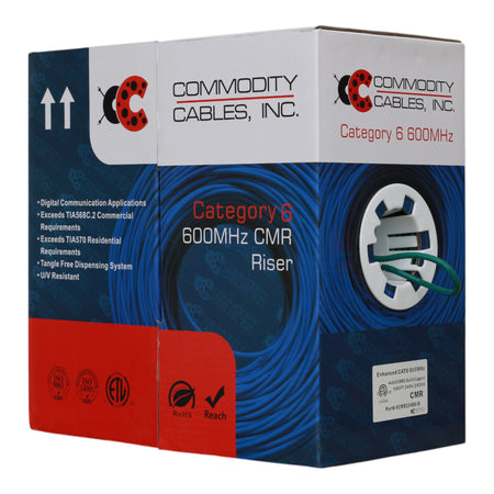This Commodity Cables 6CMR234BVD CAT6 data cable provides reliable 600 MHz performance for high-speed Ethernet networks. With a 23 AWG, 4-pair unshielded twisted pair design and CMR-rated mint green PVC jacket, this 1000 ft cable ensures durable, high-quality connectivity for commercial and residential data applications.