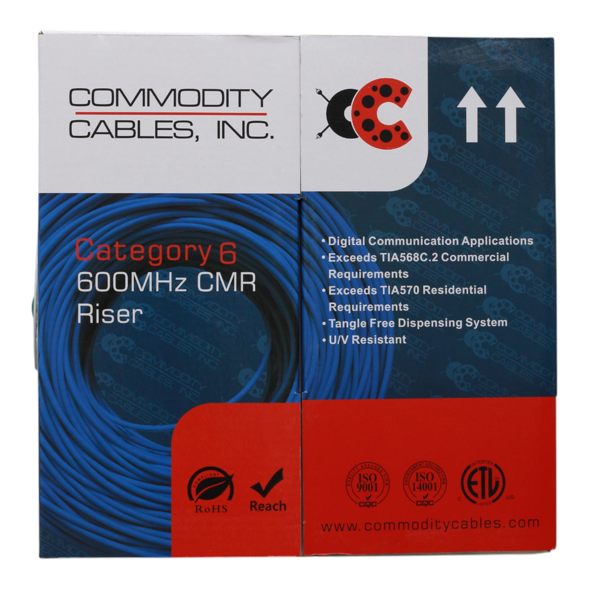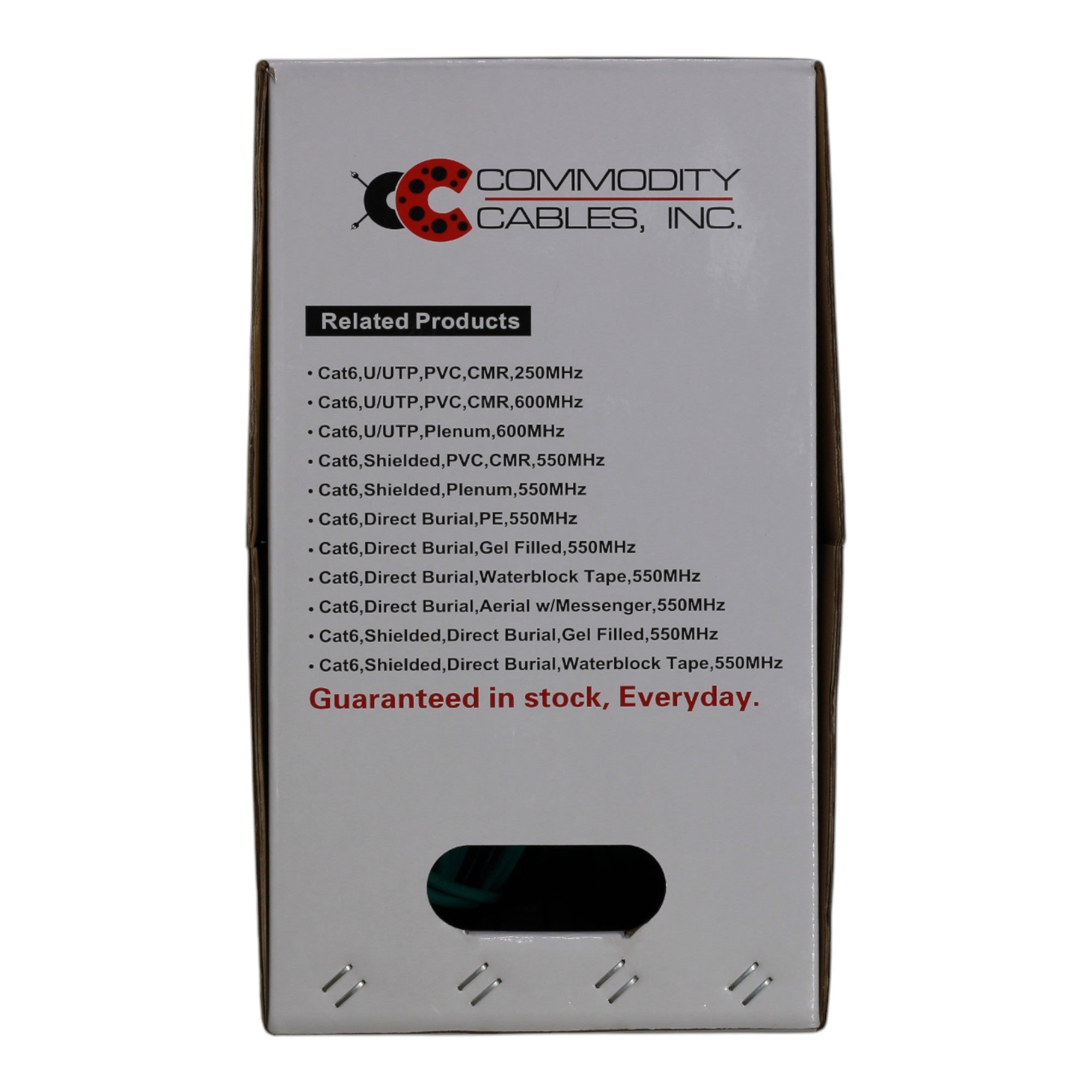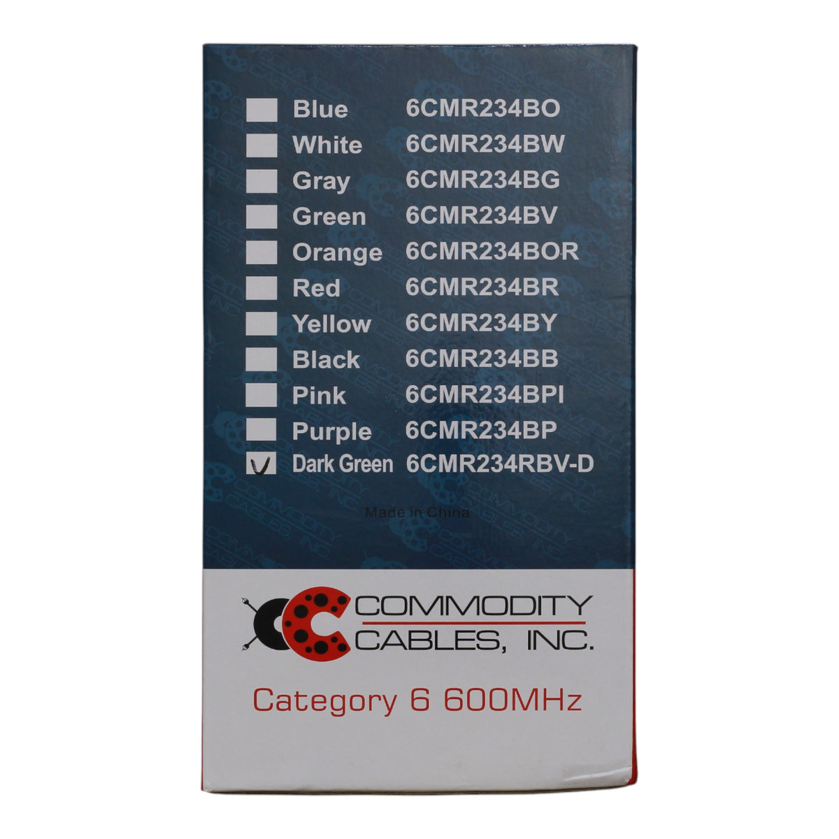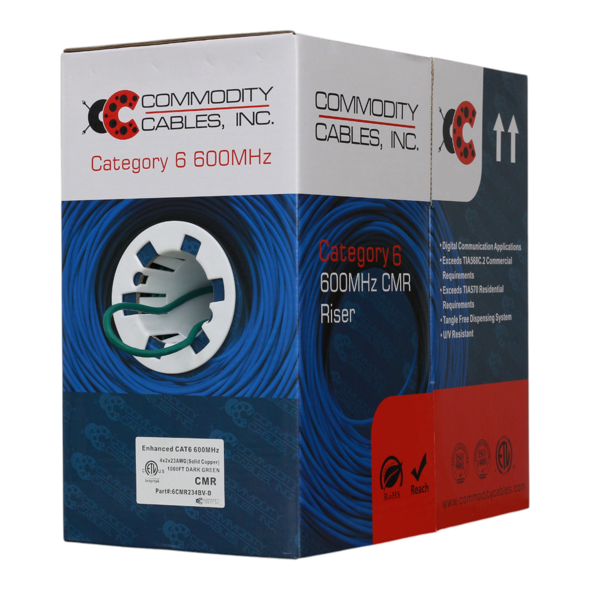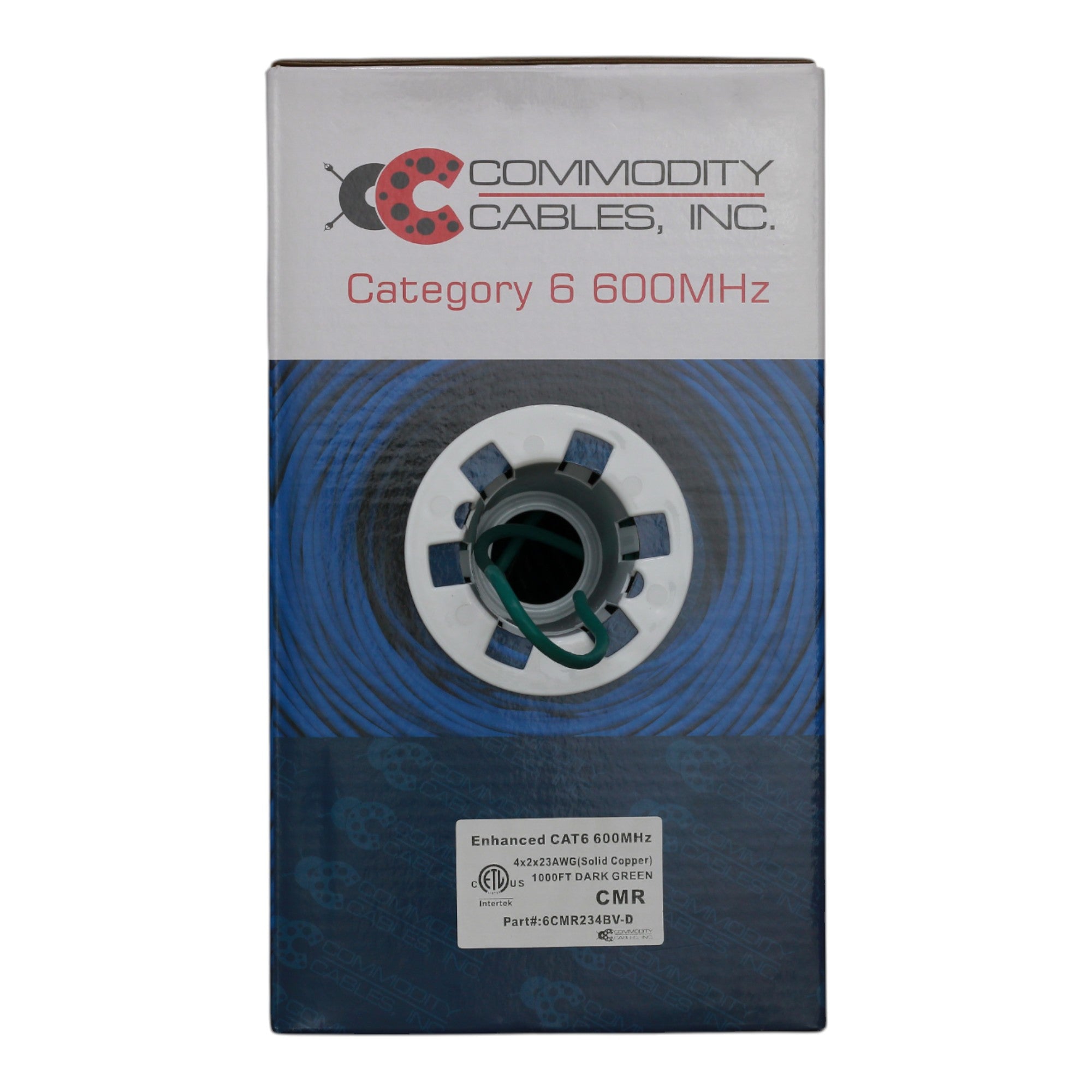 Commodity Cables 6CMR234BVD: 1000 ft CAT6 CMR 600 MHz, 23 AWG, 4-Pair unshielded twisted pair data cable, mint green PVC jacket, UL listed.