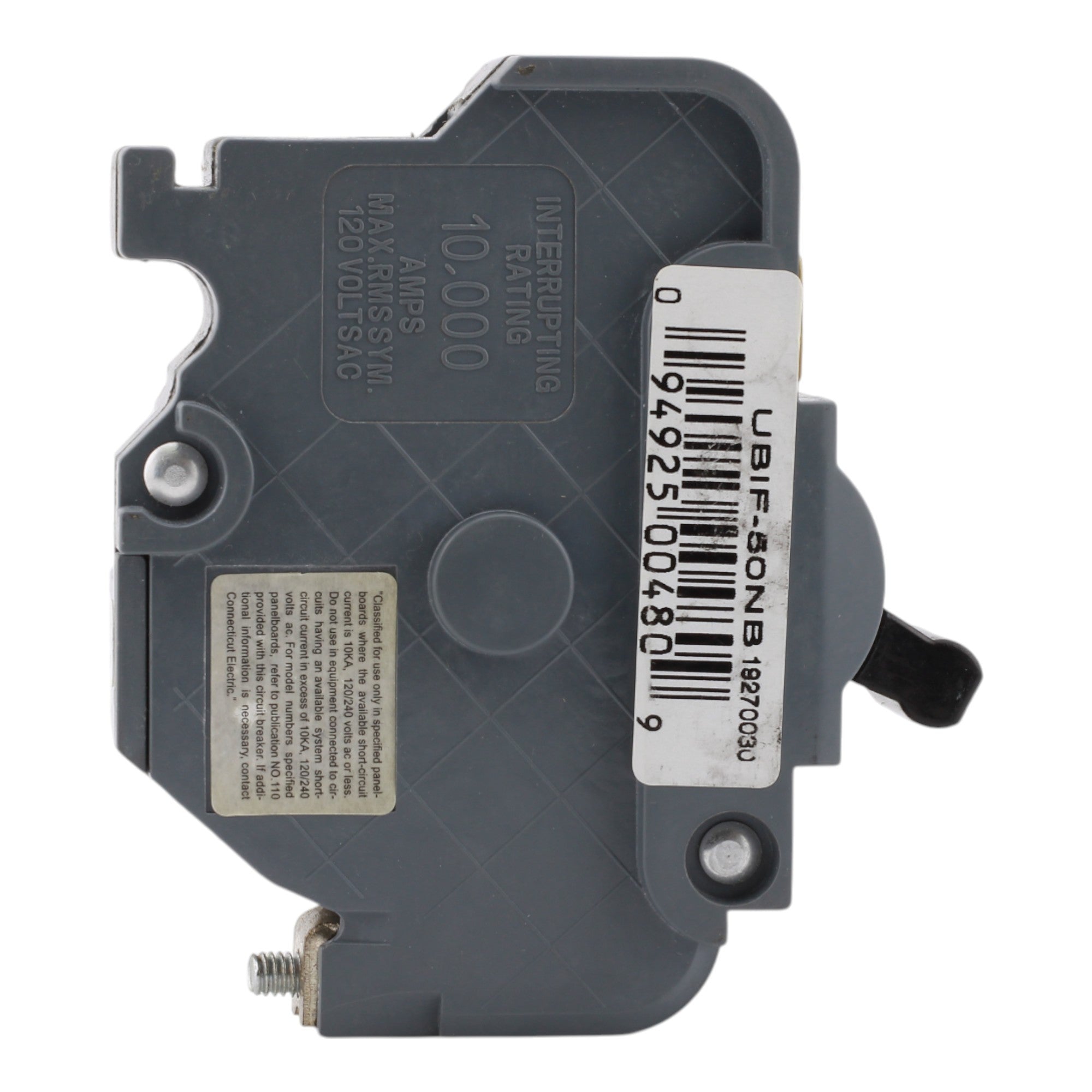Connecticut Electric UBIF-50NB: 50A 1P Federal Pacific Electric replacement circuit breaker, bolt-on mount, 10kA AIC, ETL Listed, compatible with NBLP and other FPE commercial panels, thick NB type.