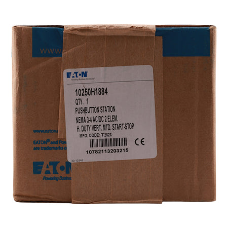 - Certifications: UL Listed, CSA Certified, CE Marked This Eaton 10250H1884 30.5mm heavy-duty pushbutton provides reliable START STOP control for industrial panels. With 1NO-2NC contacts, NEMA 4X and IP66 ratings, and a durable polyester enclosure, it ensures long-lasting performance in harsh environments.
