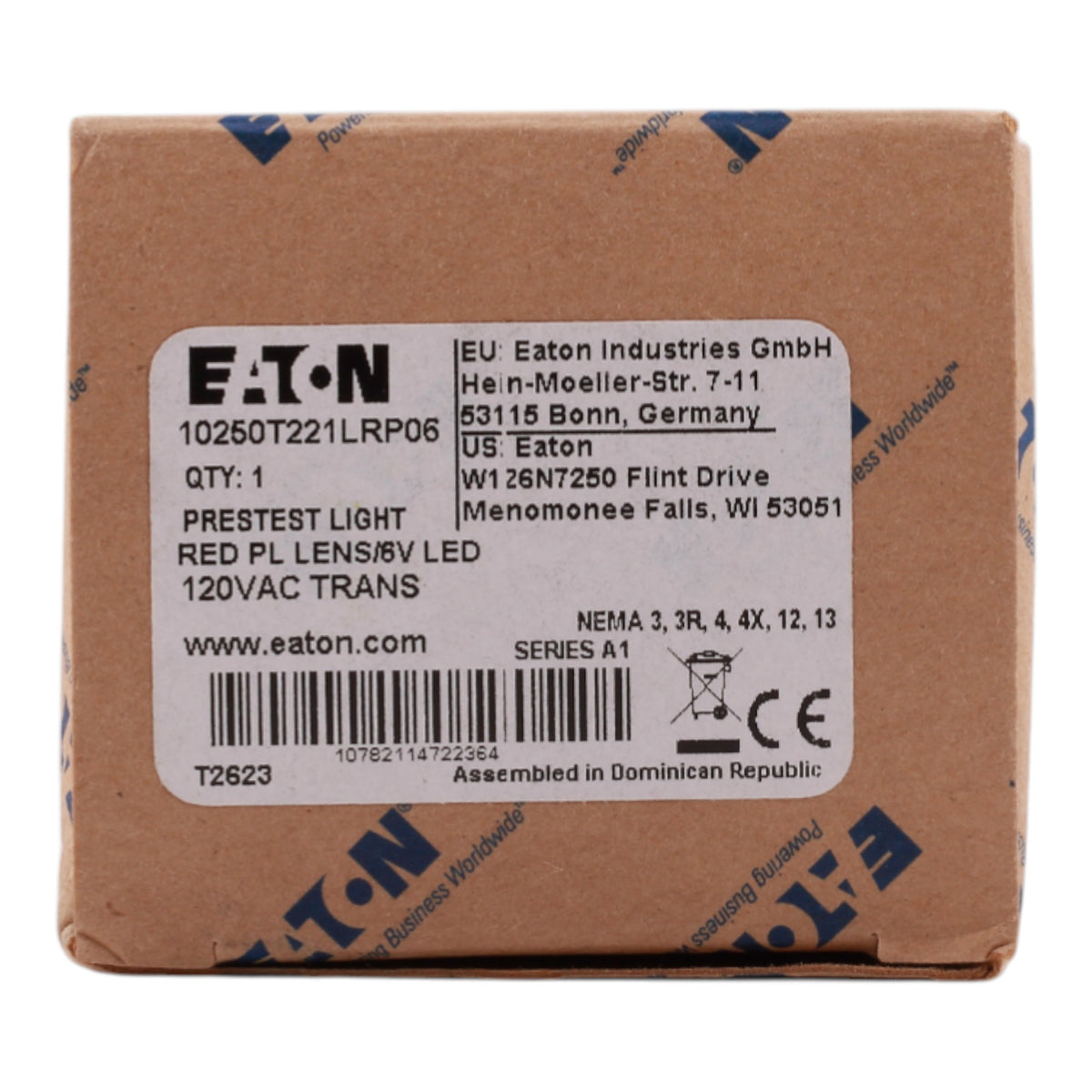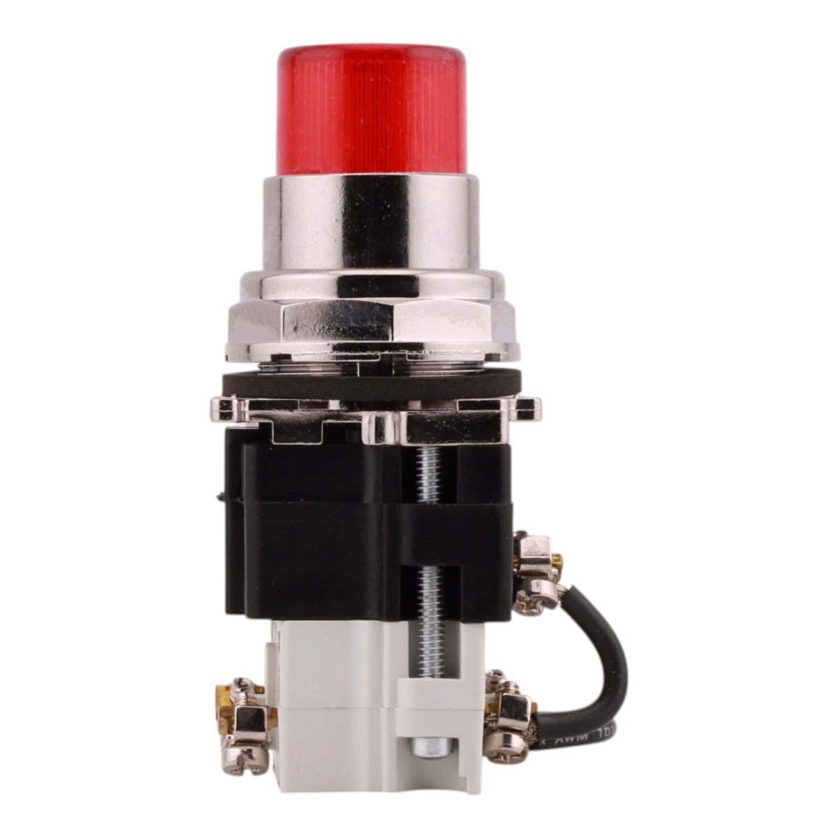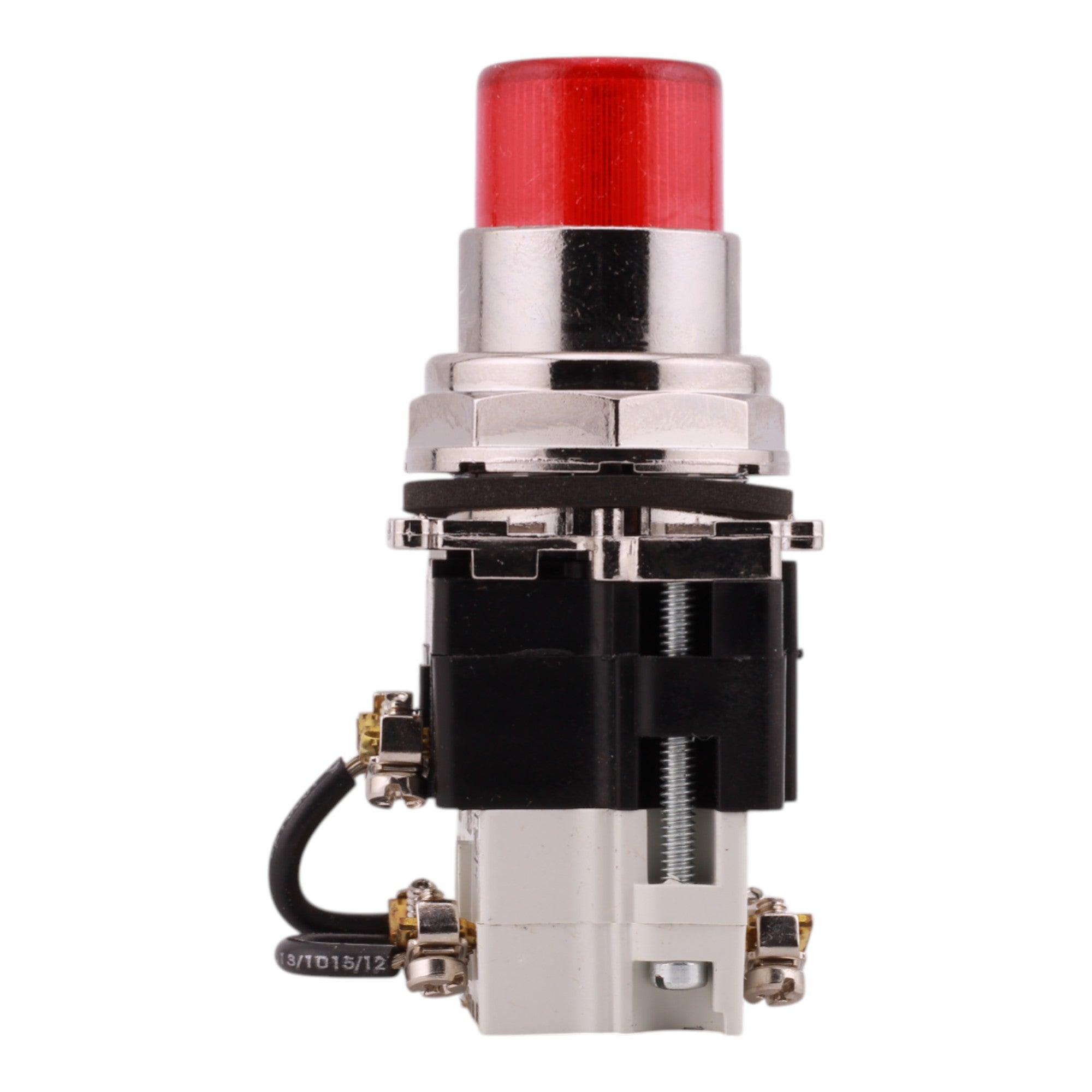 Eaton 10250T221LRP06: 120 Volt Red LED Heavy-Duty Watertight/Oiltight PresTest Indicating Light, 30.5 mm, NEMA 3, 3R, 4, 4X, 12, 13, UL Listed, CSA Certified.