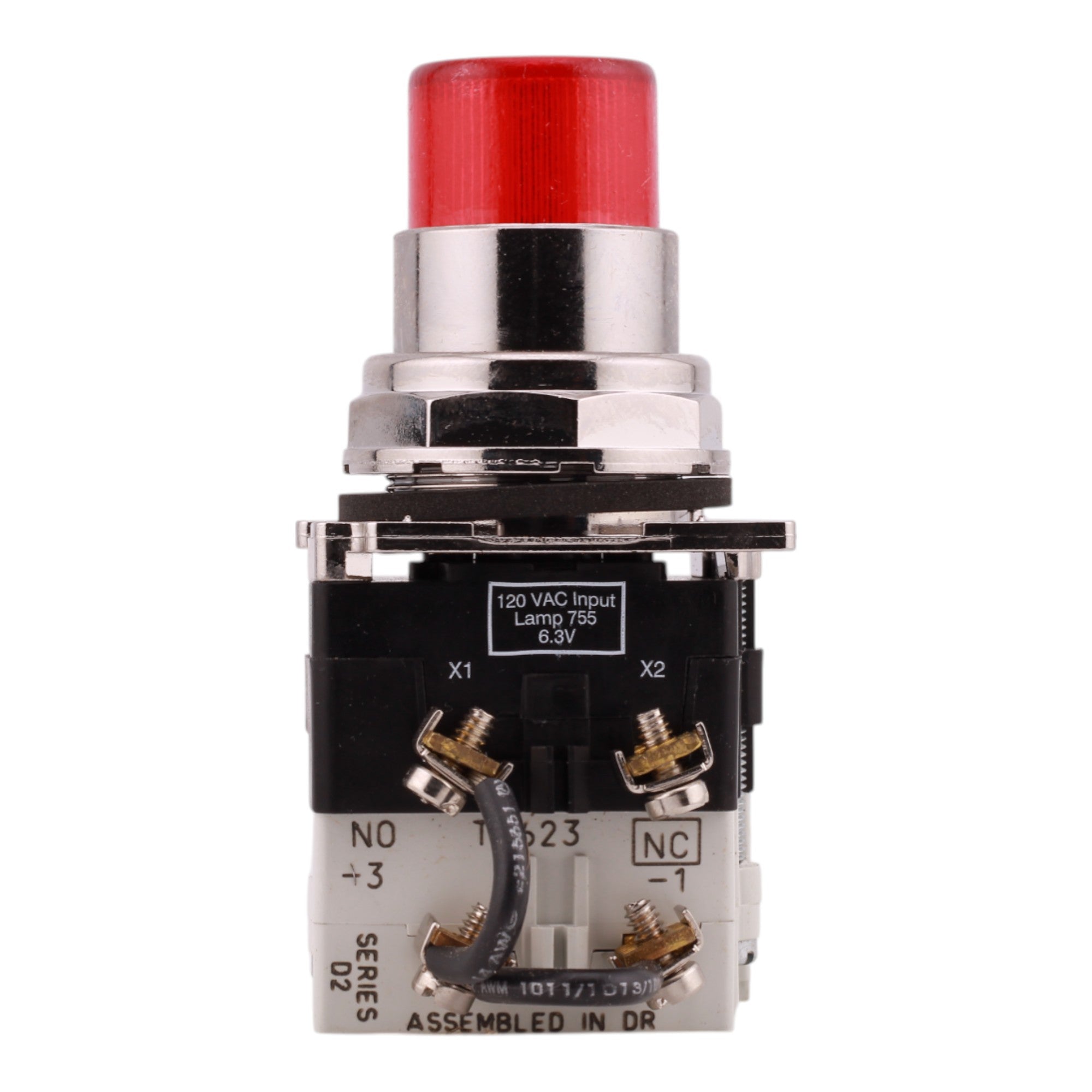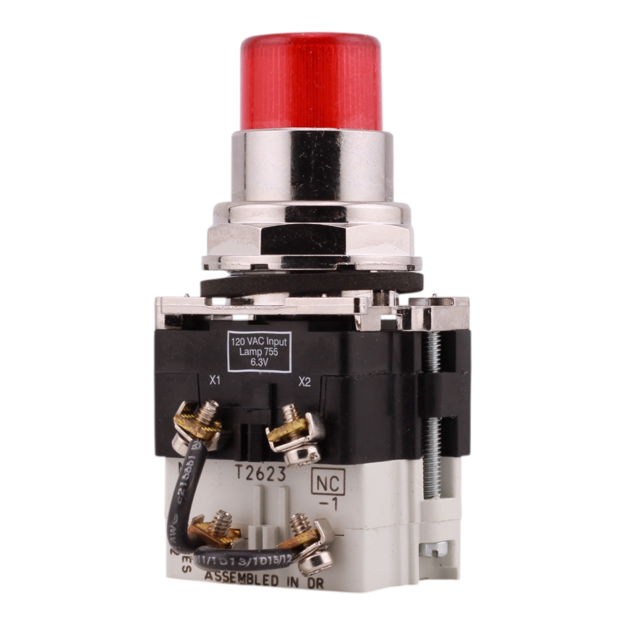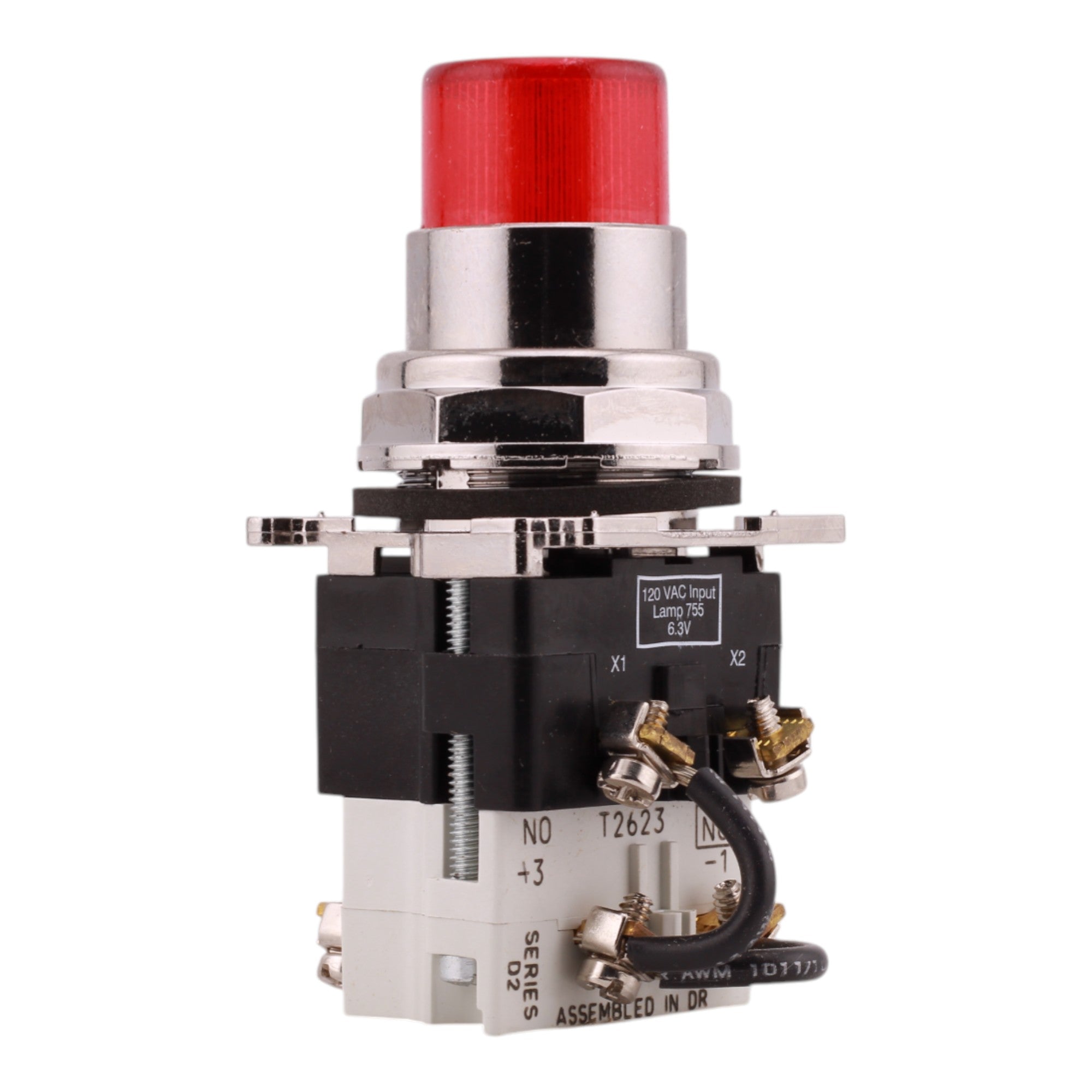 Eaton 10250T221LRP06: 120 Volt Red LED Heavy-Duty Watertight/Oiltight PresTest Indicating Light, 30.5 mm, NEMA 3, 3R, 4, 4X, 12, 13, UL Listed, CSA Certified.