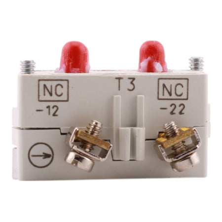 Eaton 10250T3: 30.5 mm Heavy-Duty Pushbutton Contact Block, 2 Normally Closed (2NC) contacts, pressure terminals, UL Listed, CSA Certified.