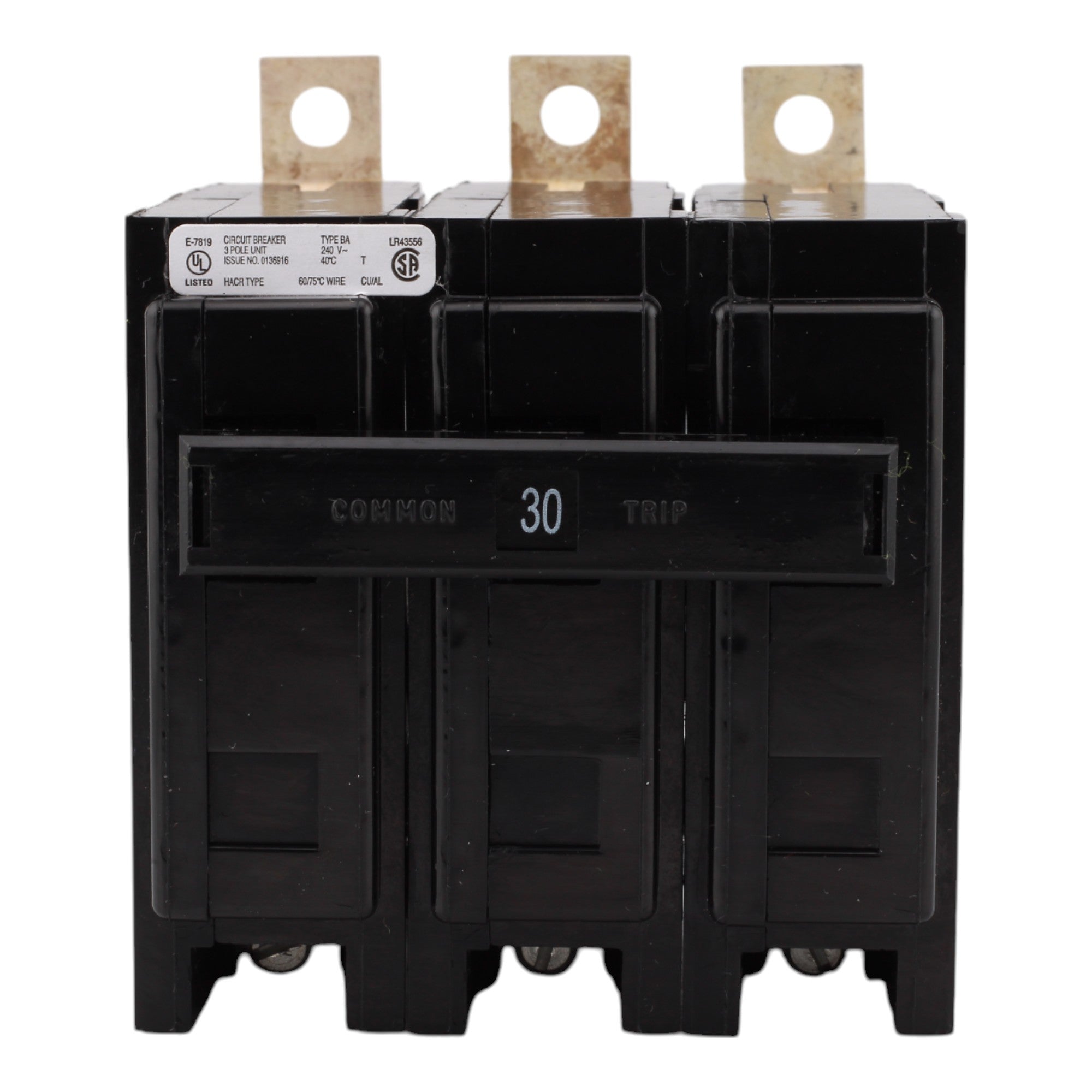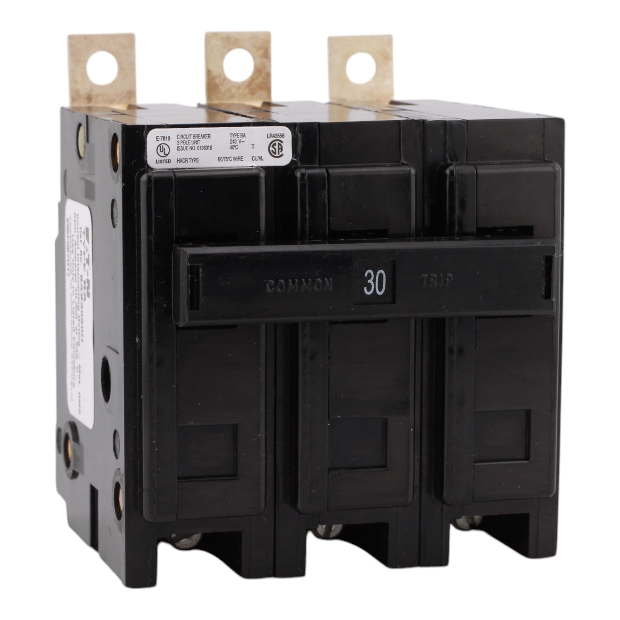 Eaton BAB3030H, 30A, 240V, 3-Pole, 10kAIC, Quicklag Industrial Thermal-Magnetic Circuit Breaker, Bolt-On