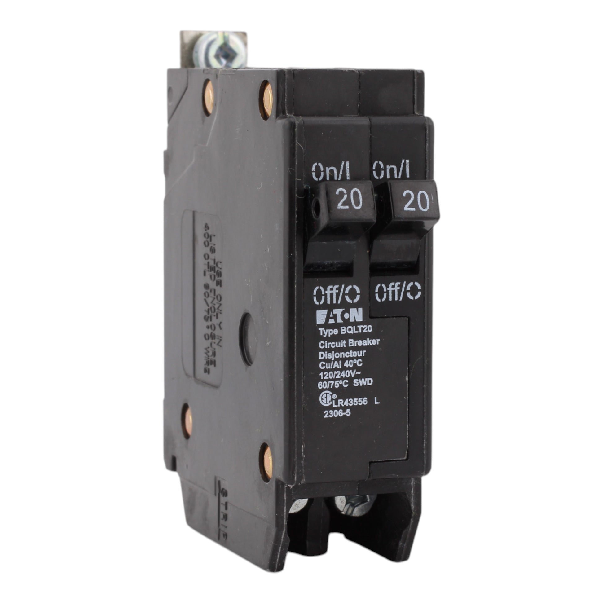 Eaton BQLT20 20A 120/240V 2-Pole Tandem Thermal Magnetic Circuit Breaker, Bolt-On, 10kA Interrupt, Type BQL, for Eaton Panels