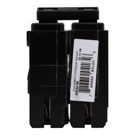 This Eaton BRHX2100 thermal magnetic circuit breaker delivers reliable 100A, 2-pole protection with a high 22kA interrupt rating for 120/240V circuits in Eaton BR loadcenters. Featuring non-interchangeable trip and plug-on mounting, it provides robust overcurrent and short-circuit protection for residential and light commercial applications.