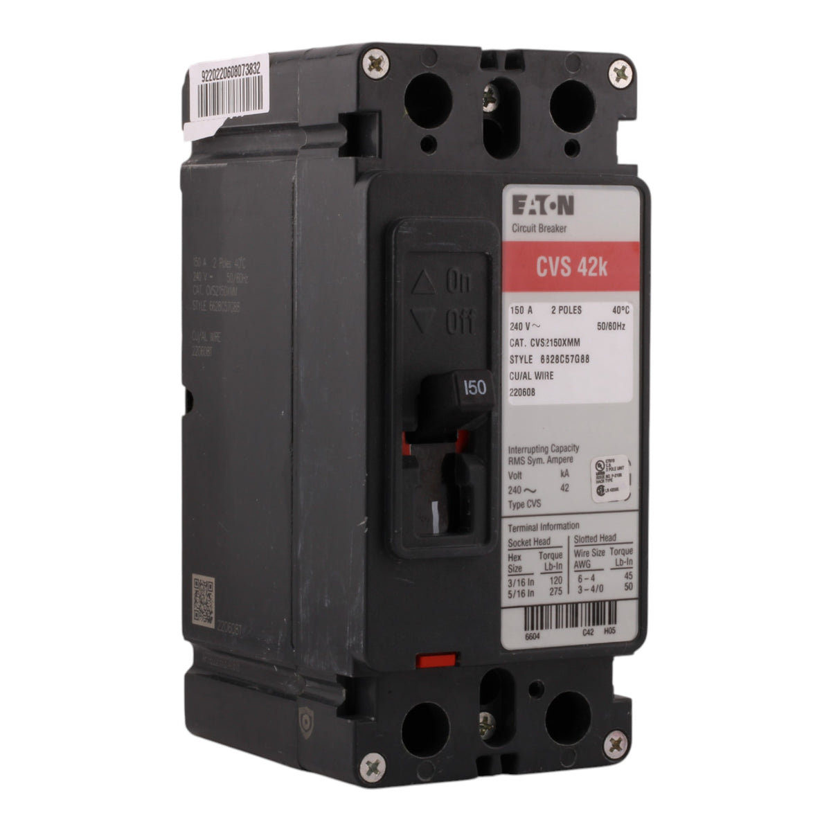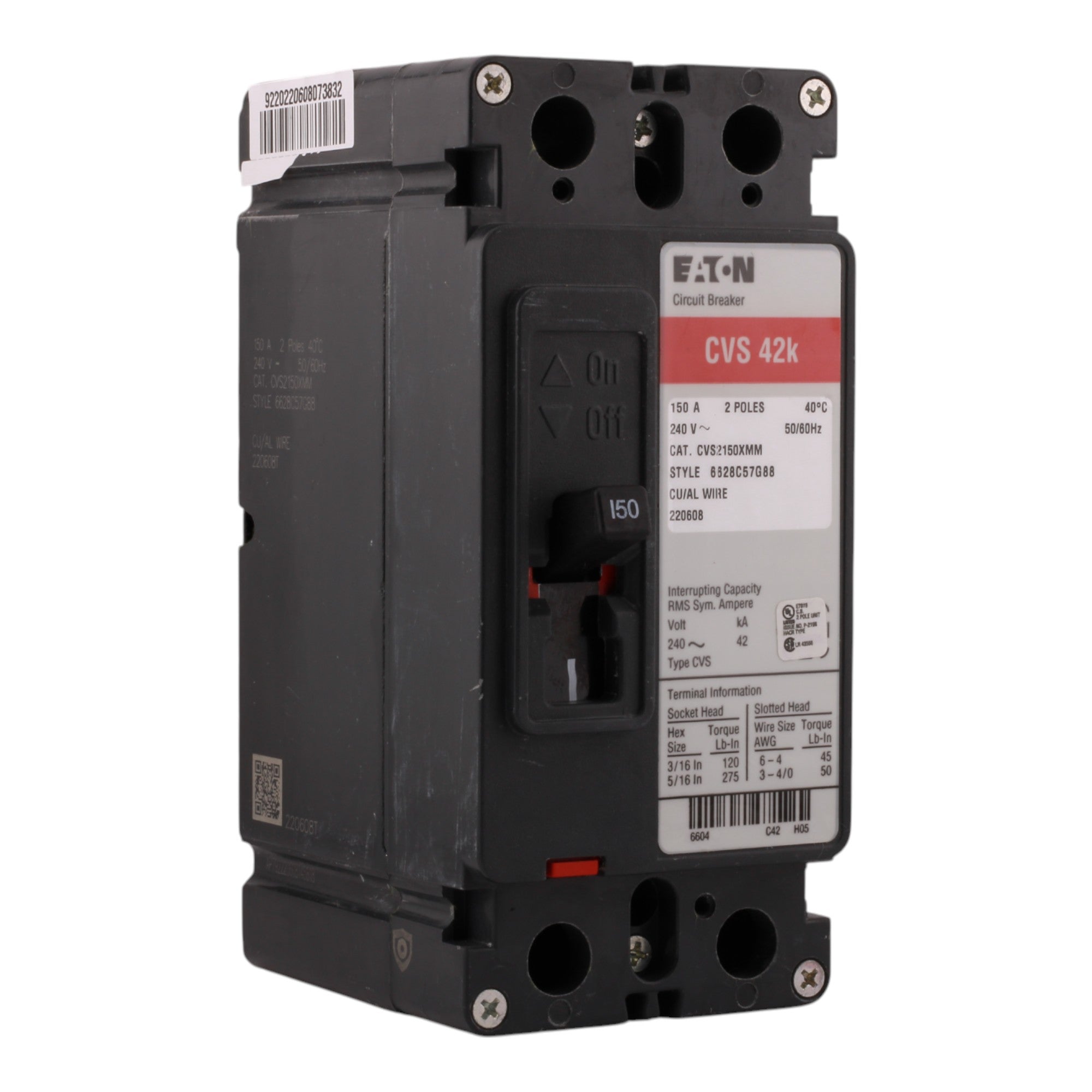 Eaton CVS2150XMM: 150 Amp Two-Pole Molded Case Circuit Breaker, 42kAIC, #6-4/0 AWG, Includes Mounting Kit, UL 489 Certified