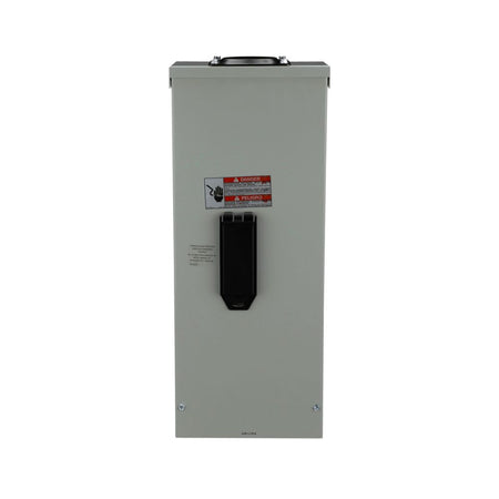 This Eaton ECCVH150R NEMA 3R enclosed circuit breaker delivers robust 150A, 2-pole protection for 240V outdoor applications. Factory-installed with a CCVH2150 breaker offering 25kAIC interruption, it provides reliable overcurrent safeguarding in a weatherproof rainproof enclosure ideal for service entrance and residential or light commercial use.