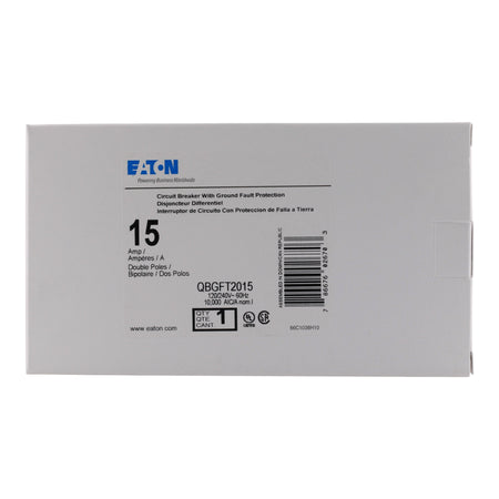 This Eaton QBGFT2015 circuit breaker provides reliable 15A, 2-pole GFCI protection for 120/240V circuits in QB loadcenters. With 5mA ground fault detection, it ensures enhanced safety for residential and commercial applications.