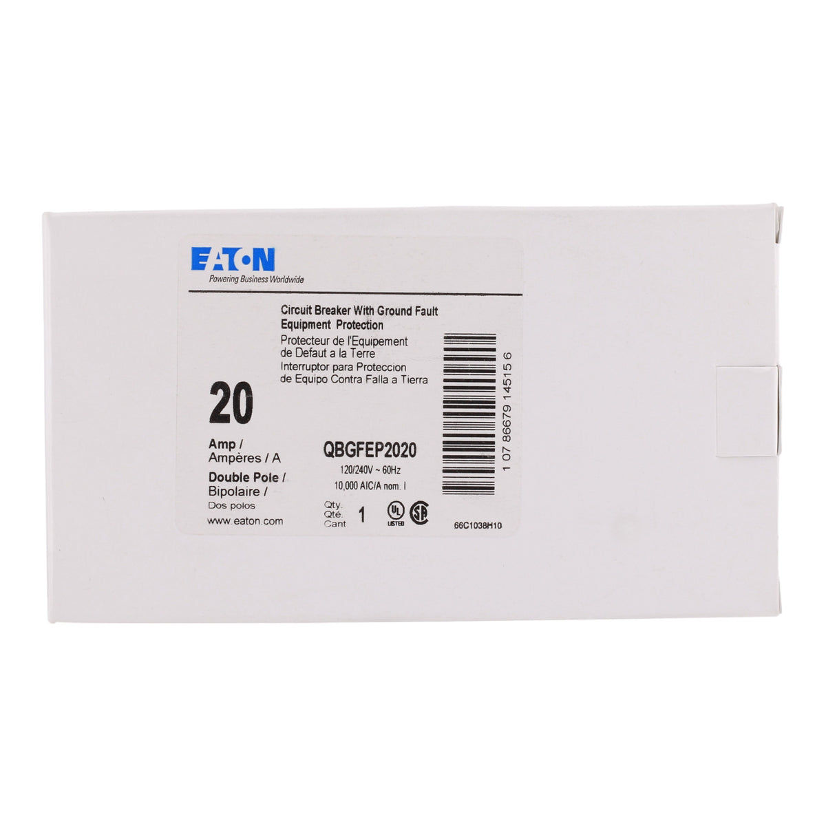 This Eaton QBGFEP2020 bolt-on ground fault equipment protector (GFEP) provides reliable 20A, 2-pole protection with 30mA sensitivity for 240V circuits. Featuring thermal-magnetic trip and 10kA interrupt rating, it delivers essential personnel and equipment safety in commercial and industrial applications requiring BAB-frame bolt-on breakers.