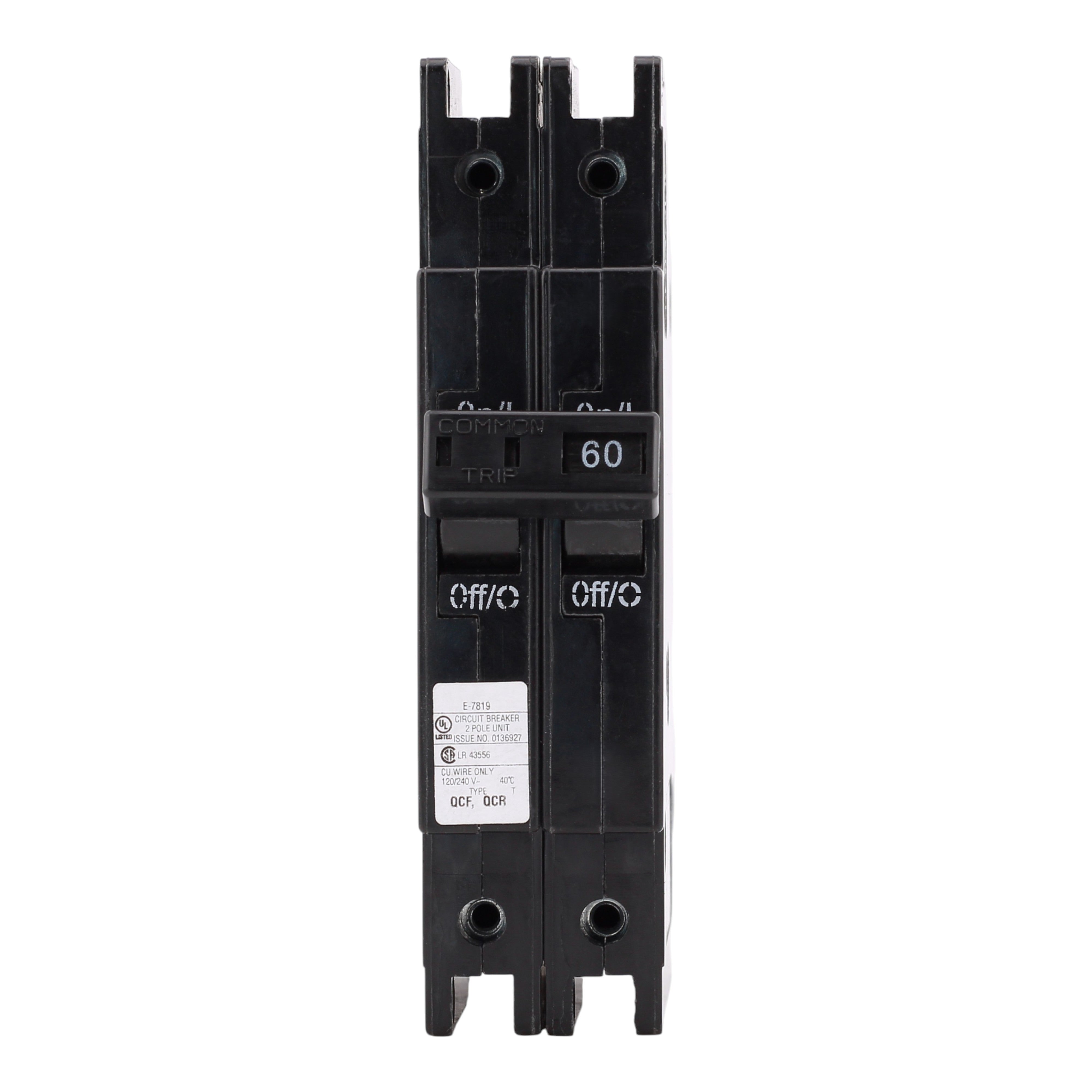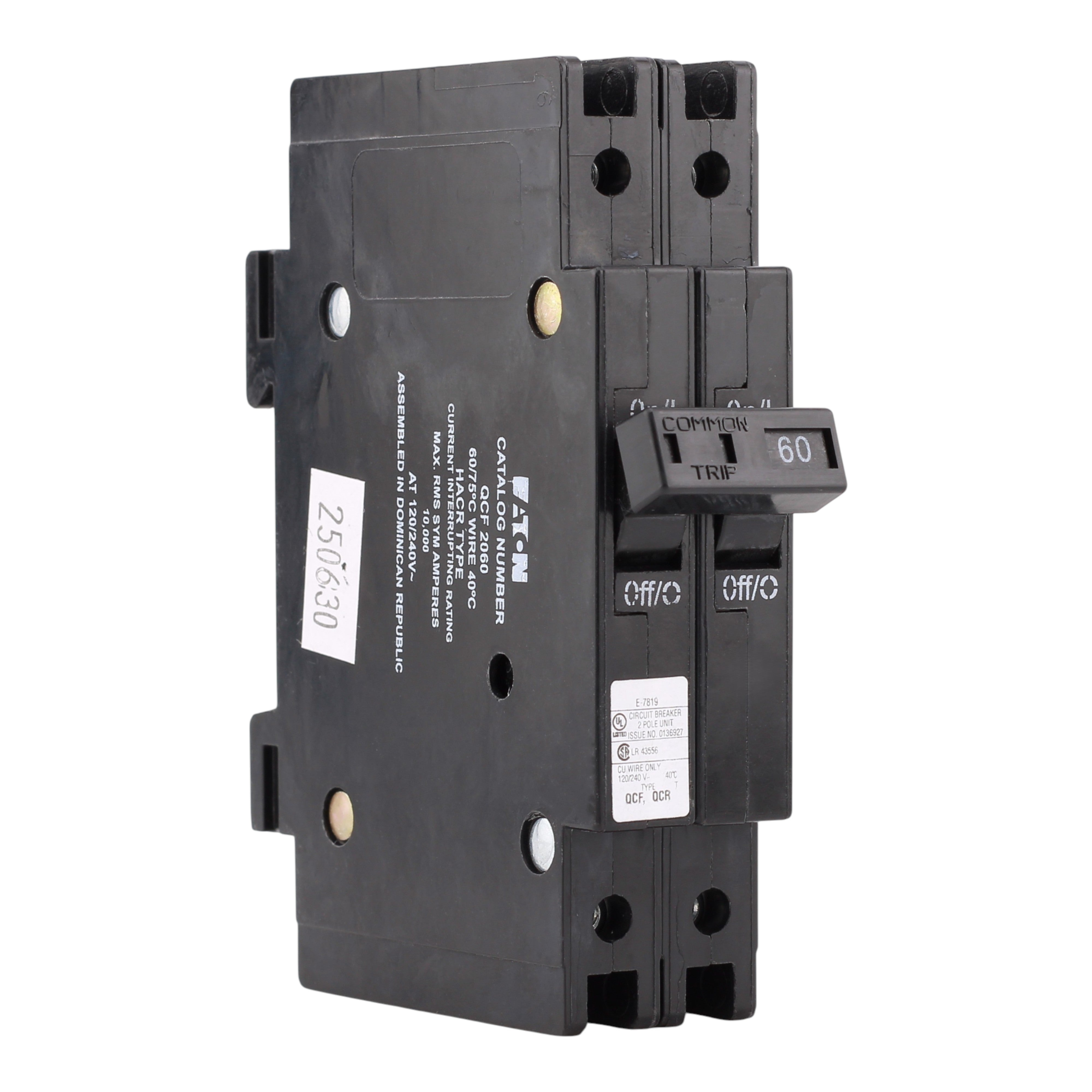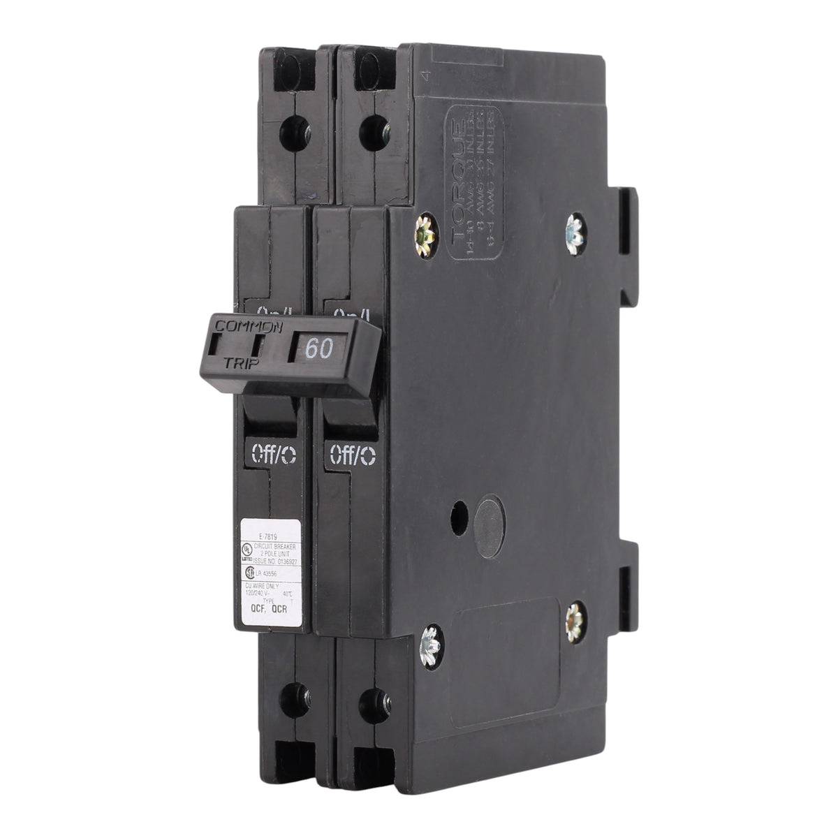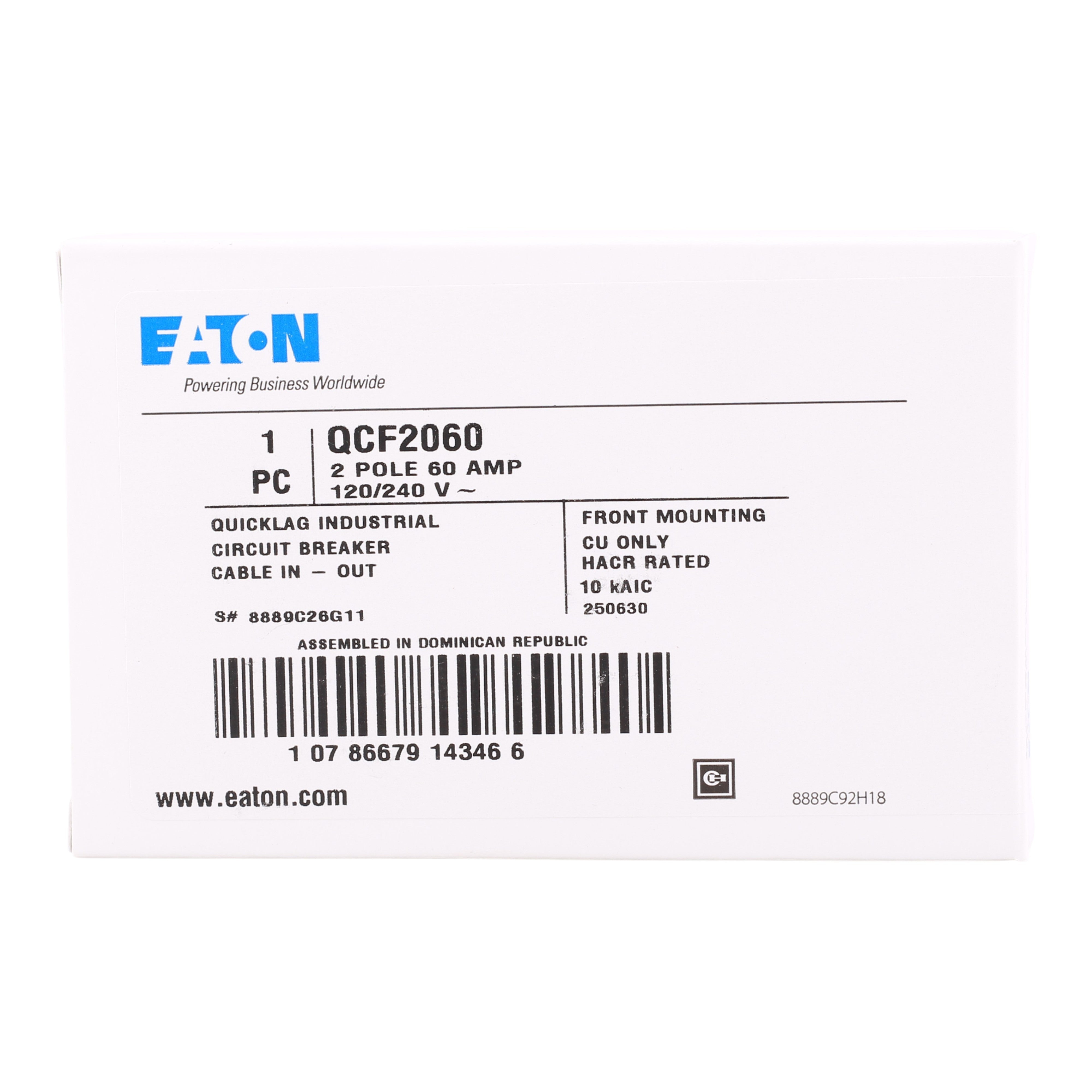 Eaton QCF2060: 60 Amp 2-Pole Thermal-Magnetic Circuit Breaker, 120/240V, 10kA, Cable-In/Cable-Out, UL Listed, CSA Certified