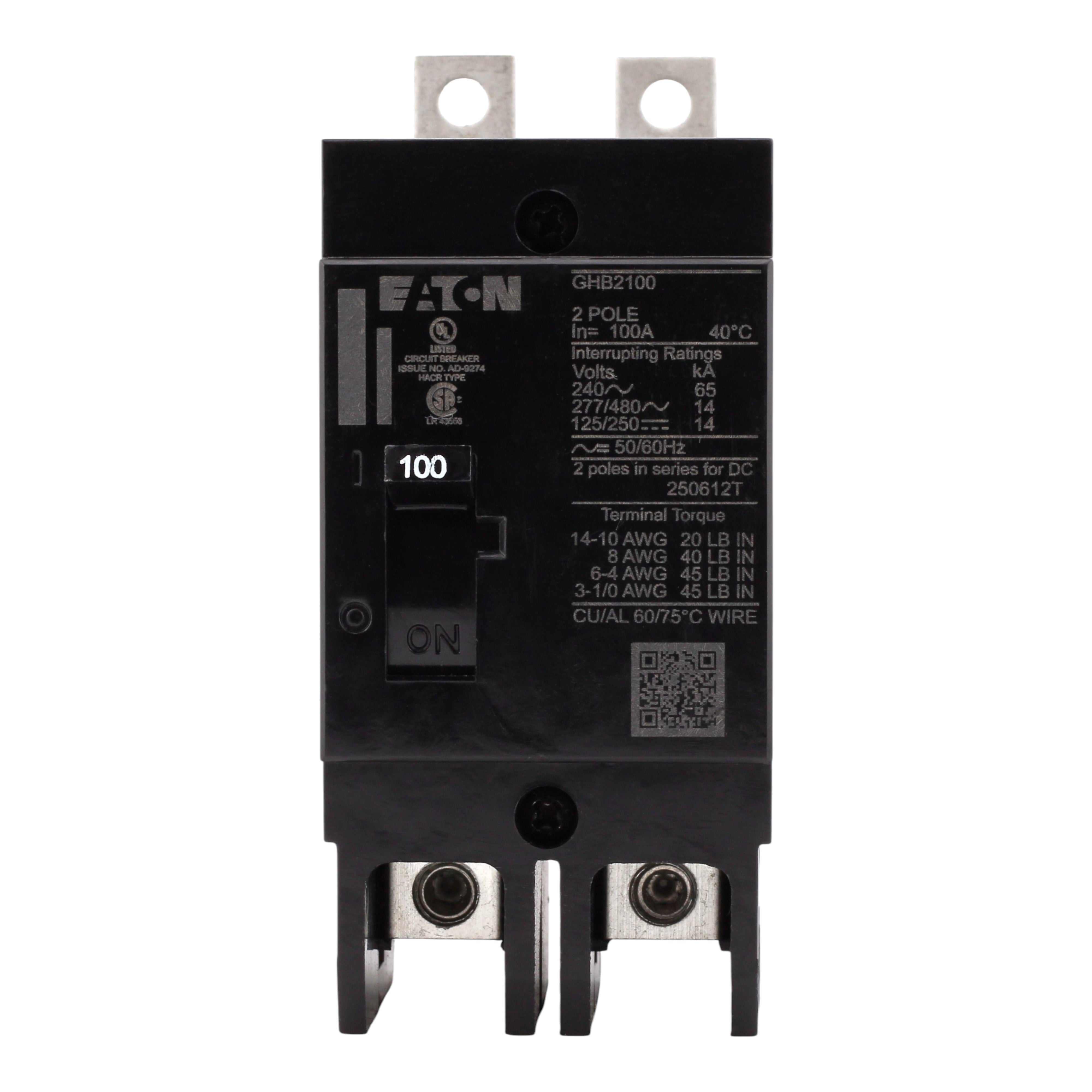 Eaton GHB2100: 100 Amp 2-Pole Molded Case Circuit Breaker, 480Y/277V, 65kAIC at 240V, 14kAIC at 480Y/277V, UL Listed