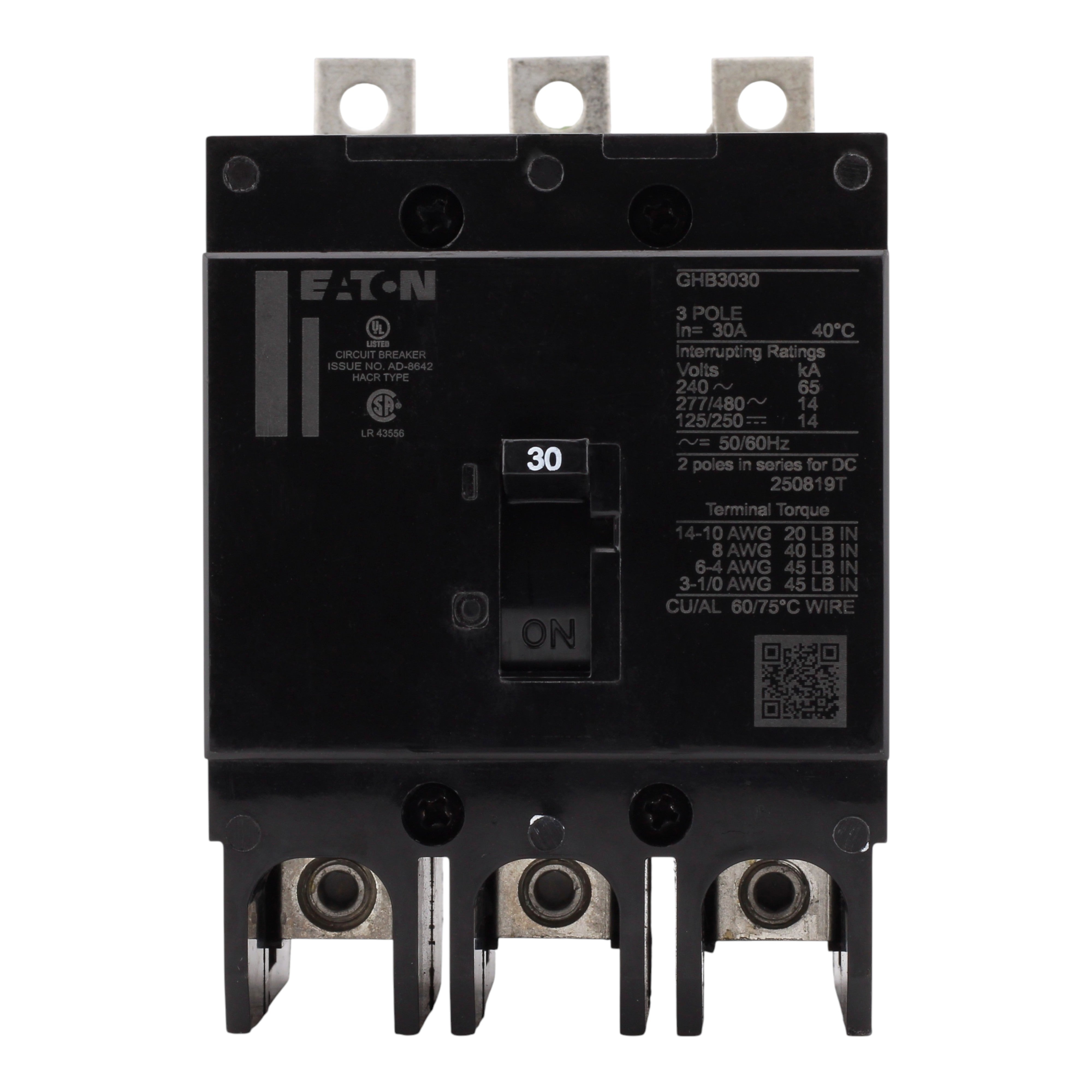 - Certifications: UL Listed This Eaton Series C GHB3030 molded case circuit breaker delivers reliable 30A, 3-pole protection for 480Y/277 Vac or 125/250 Vdc systems with fixed thermal and fixed magnetic trip operation. Offering 65 kAIC interrupt at 240 Vac and 14 kAIC at 480Y/277 Vac, it ensures robust performance in commercial and industrial applications.
