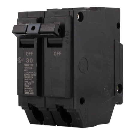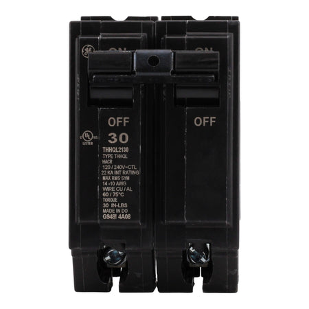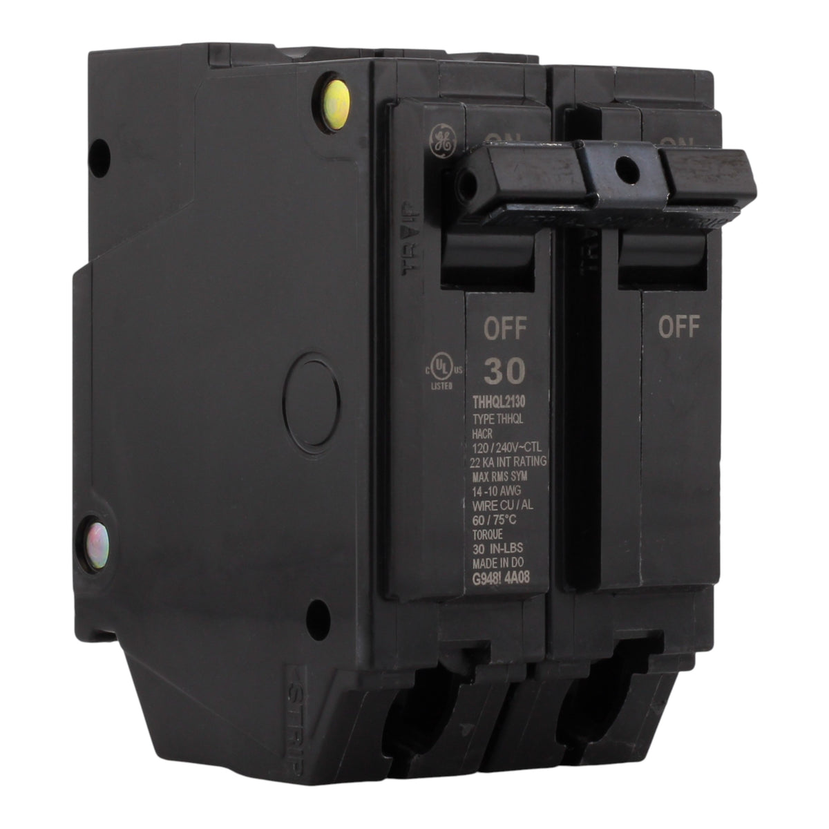 - Certifications: UL Listed, HACR Rated This GE Q Line THHQL2130 plug-in circuit breaker provides reliable 30A, 2-pole thermal-magnetic protection for 120/240V circuits in load centers and lighting panels. With 22kA interrupting capacity, quick-make/quick-break mechanism, and common trip bar, it ensures enhanced safety and easy trip indication for residential and commercial applications.