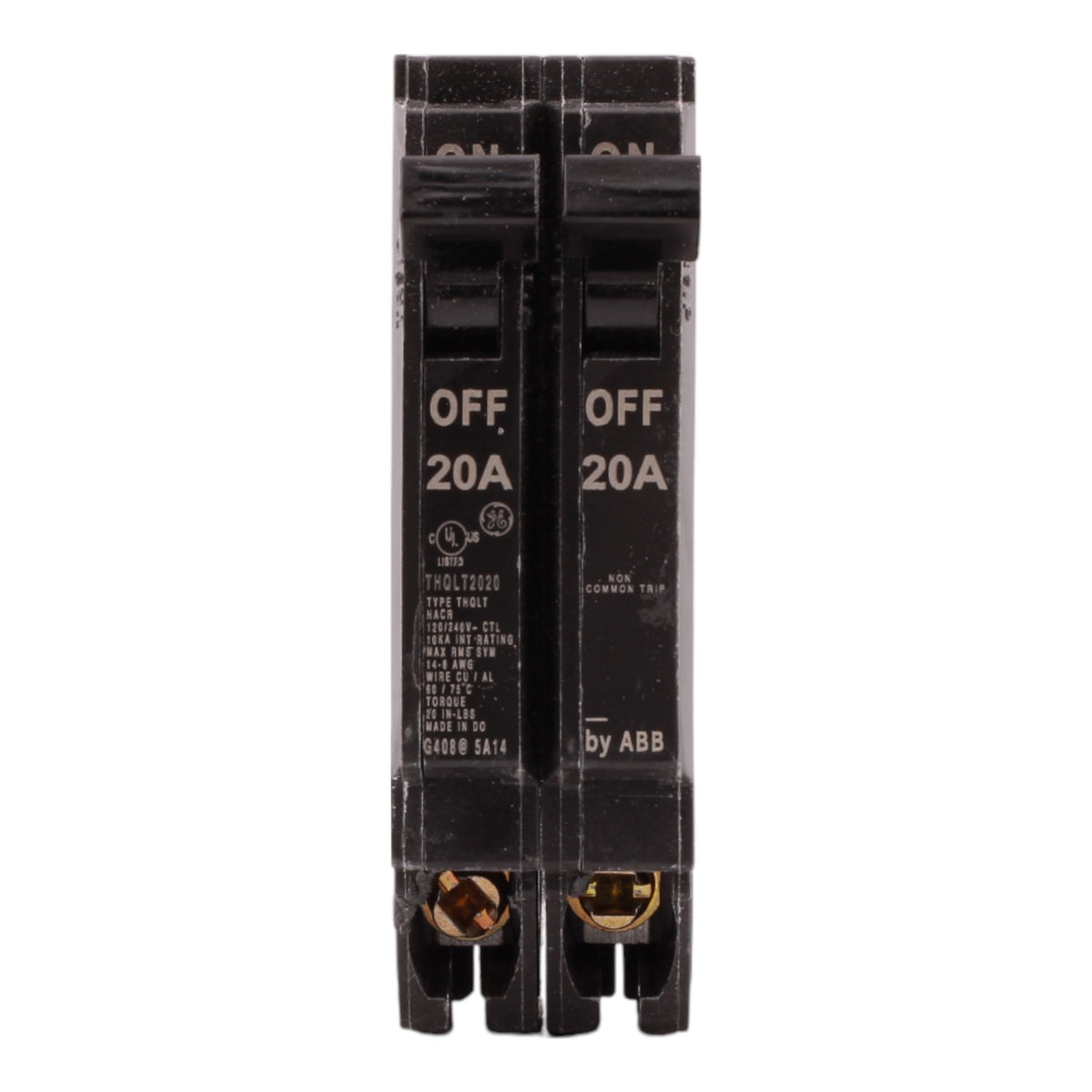 GE THQLT2020: 20/20 Amp 2x1-Pole Tandem Circuit Breaker, 120/240V, 10kA, plug-in, UL listed.