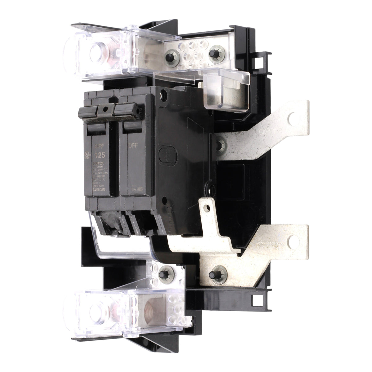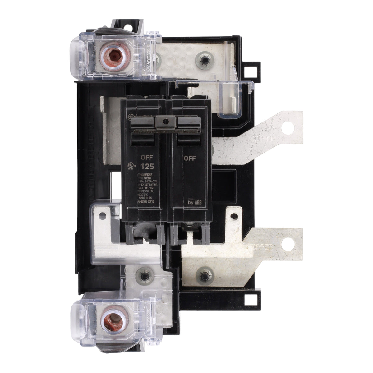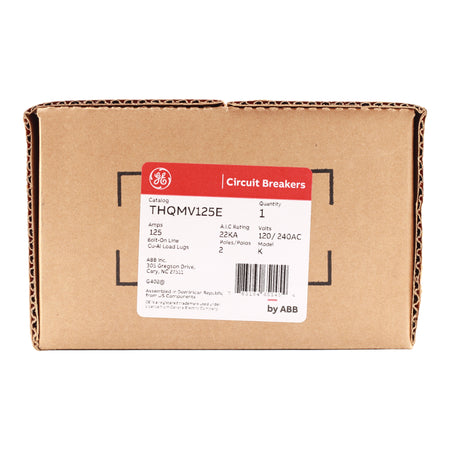 This ABB Q-Line THQMV125E main circuit breaker delivers reliable 125A, 2-pole protection for 120/240V circuits in ReliaHome load centers. Featuring thermal-magnetic trip technology, quick-make/quick-break mechanisms, and visible trip indication, it ensures circuit safety and easy installation in residential and commercial applications.