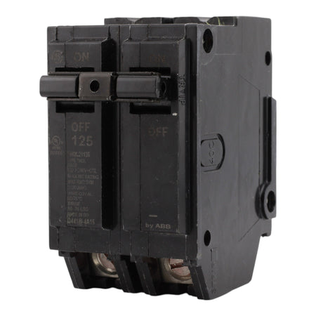 GE THQL21125: 125A 2P thermal-magnetic circuit breaker, 120/240V, 10kA interrupt rating, plug-in Q-Line design, HACR rated, non-interchangeable trip, suitable for reverse feed applications, UL listed."