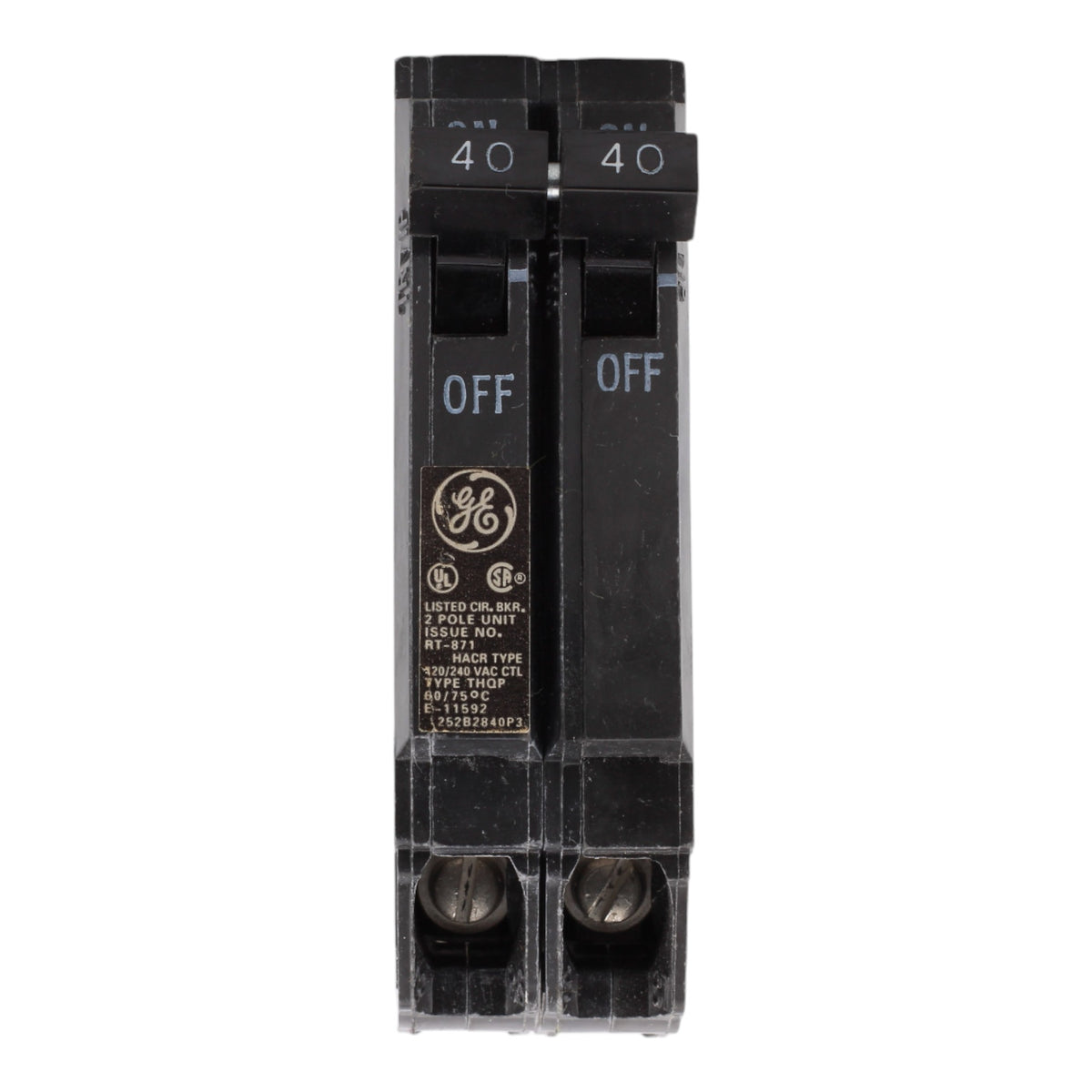 GE THQP240, 40A, 120/240V, 2-Pole Circuit Breaker, Plug-In, for Load Centers and Lighting Panels
