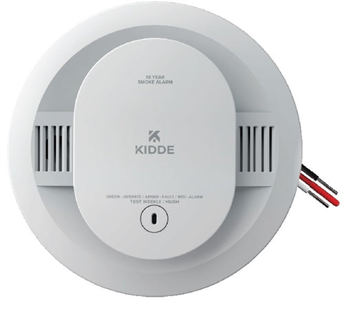 Kidde FireX SMAC10YFEX 120 Volt AC hardwired photoelectric smoke alarm with 10-year sealed battery backup, 85dB alarm, interconnectable up to 24 devices, UL listed.
