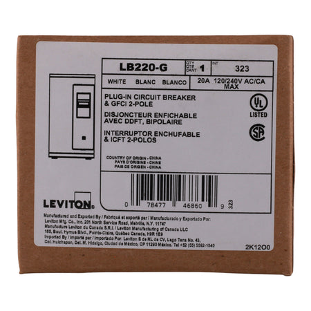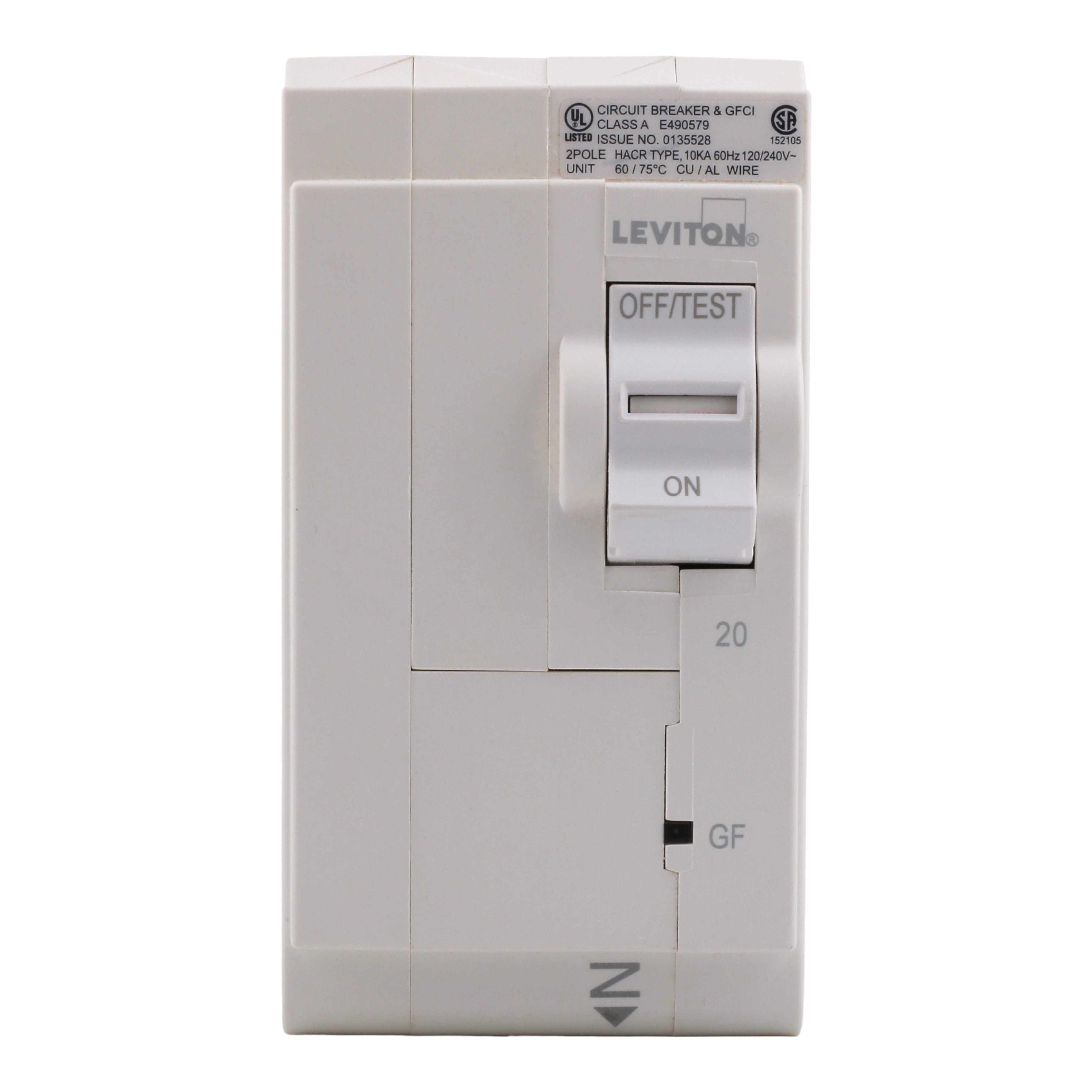 Leviton LB220-G 20A 2P 120/240V GFCI Plug-On Neutral Circuit Breaker