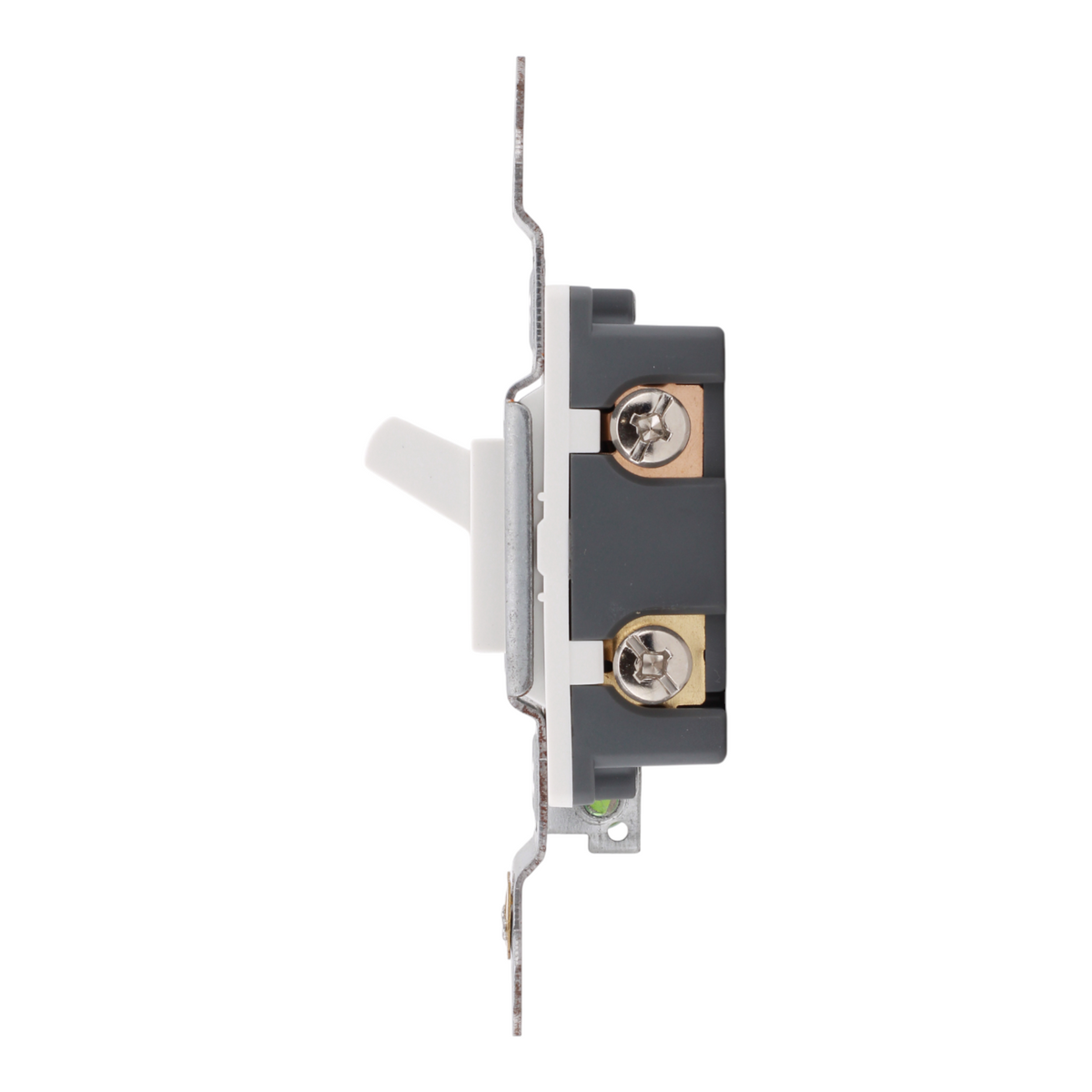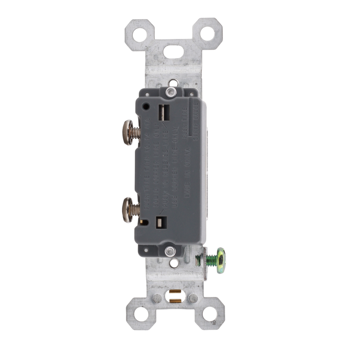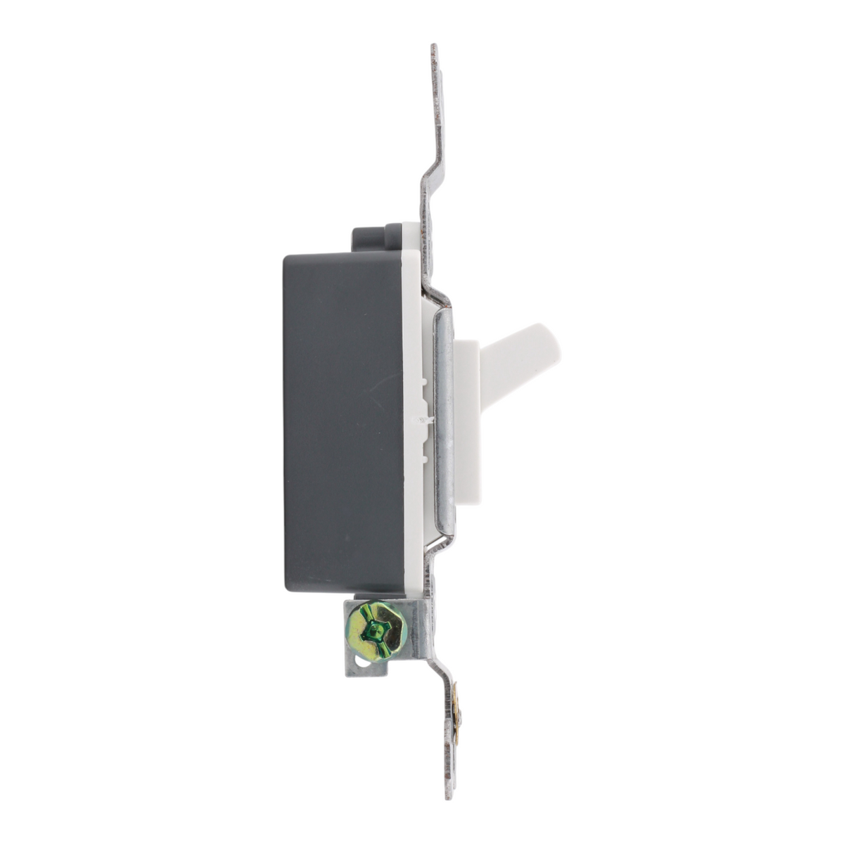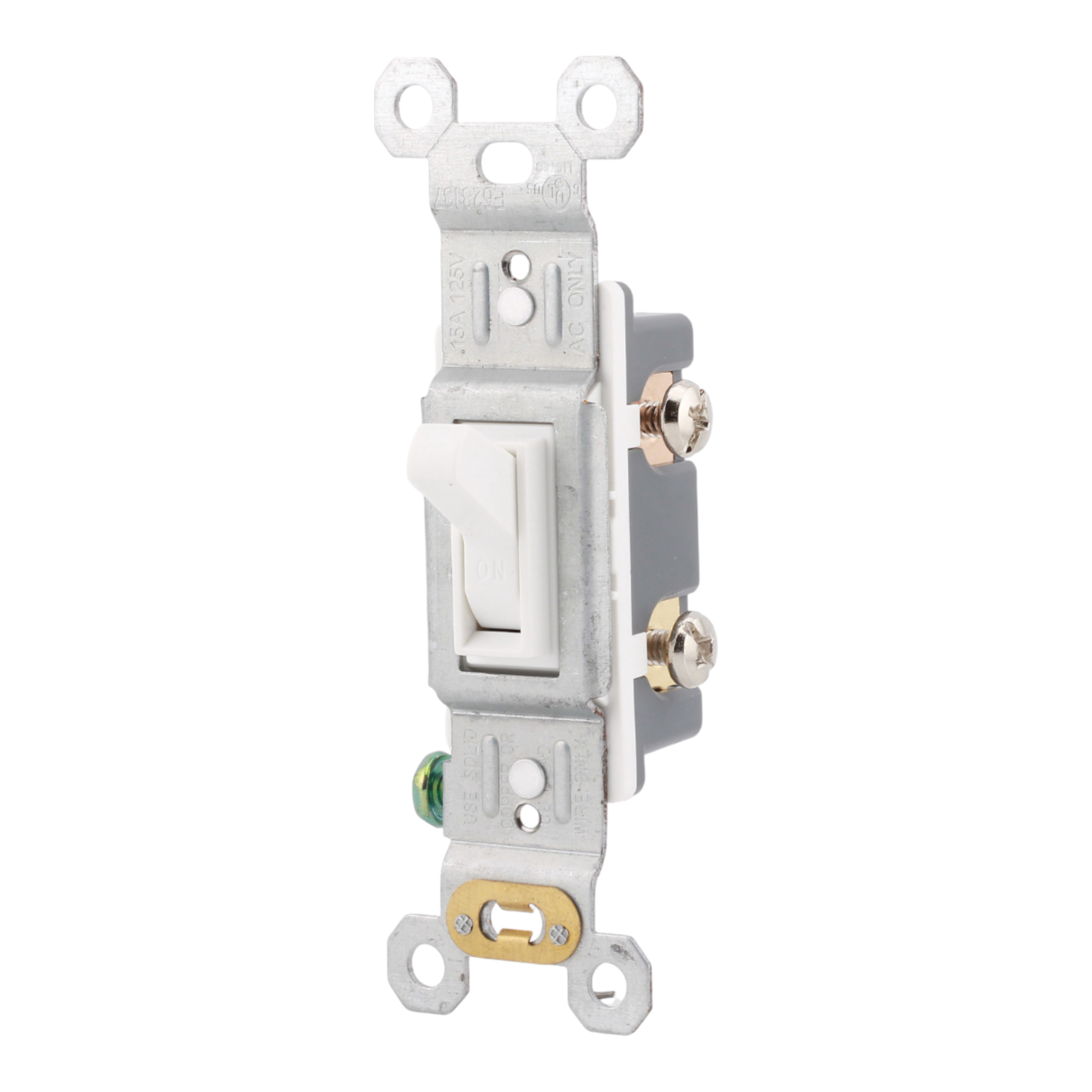 This RES POWER RES15TS1W single-pole toggle switch provides reliable 15A, 125V on/off control for lights, fans, or fixtures from one location. The sleek white toggle design fits standard wall plates while back-wire clamps and side-wire terminals ensure secure copper wiring connections for smooth, quiet operation in indoor dry locations.