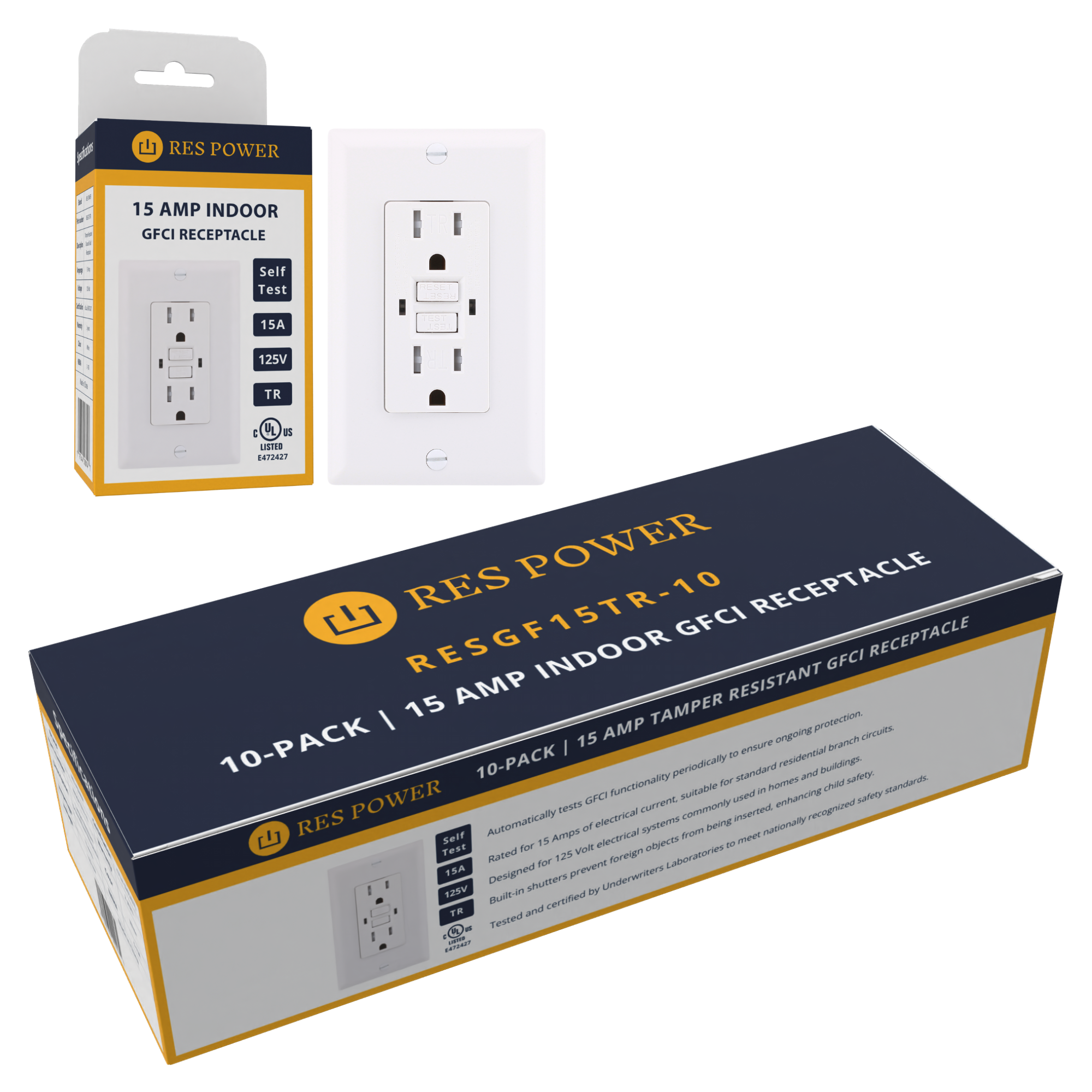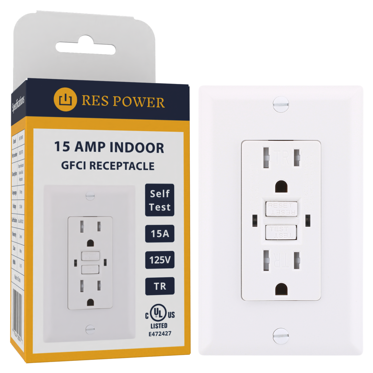 RES POWER Indoor 15A 120V Tamper-Resistant GFCI Outlet Self-Test cULus Listed, RESGF15TR