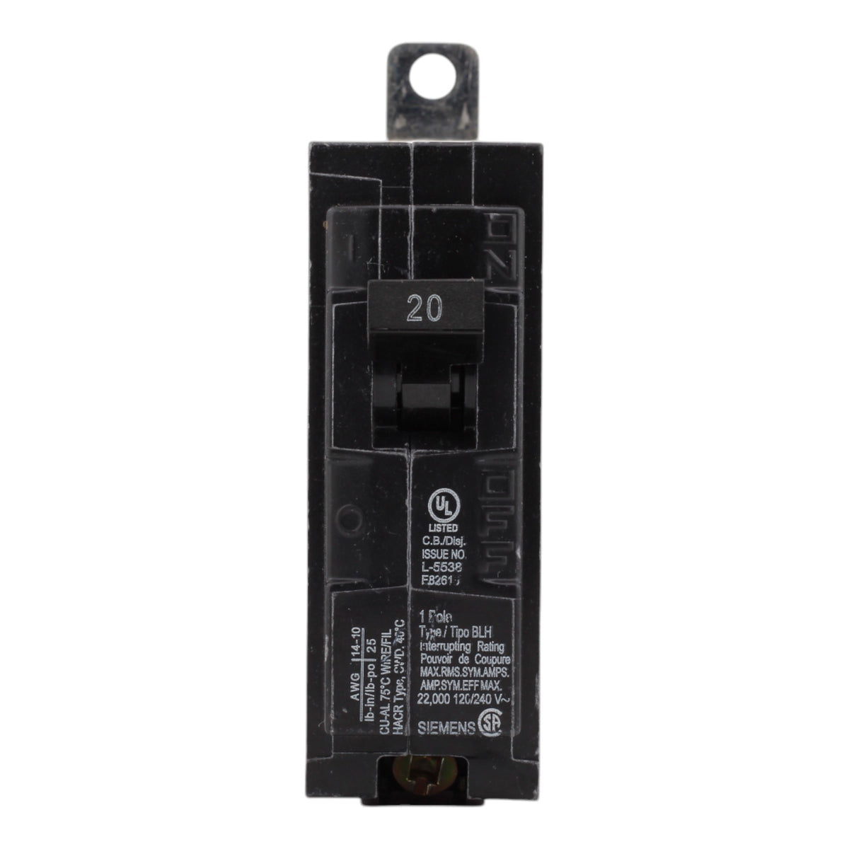 Siemens B120H 20A 120V 1-Pole Thermal Magnetic Circuit Breaker, 22kA Interrupt, Type BLH