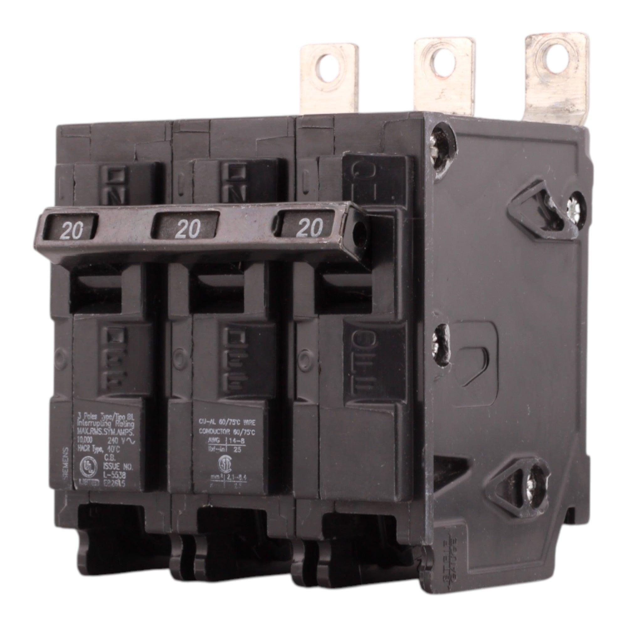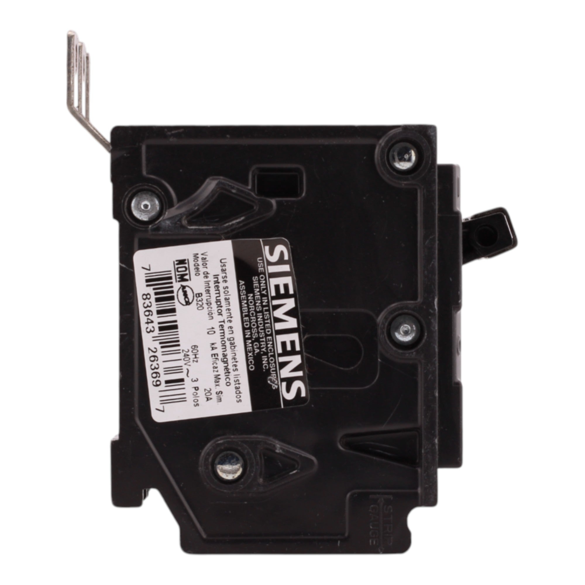Siemens B320: 20 Amp 3-Pole Thermal Magnetic Circuit Breaker, 240V, 10kA, UL listed.