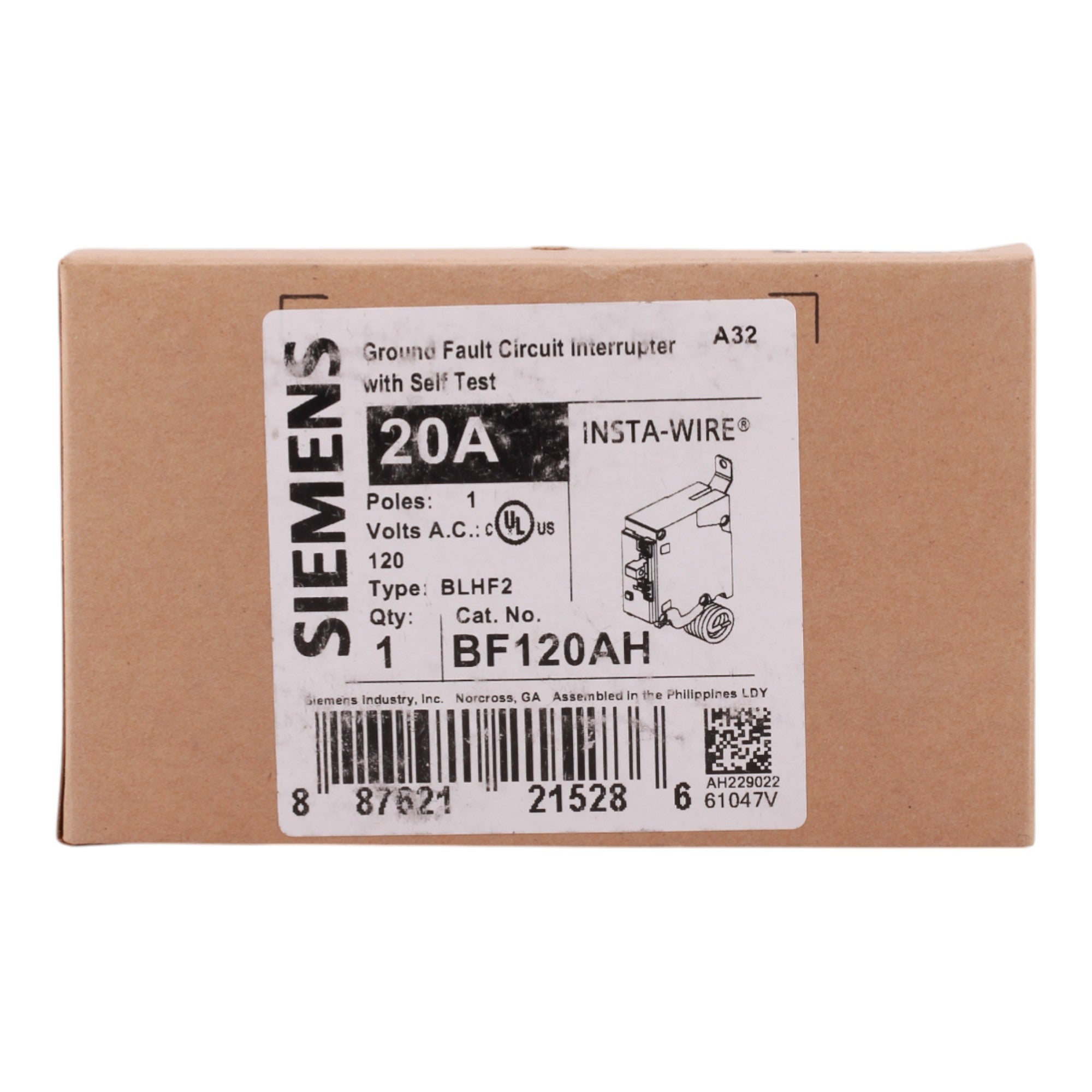 Siemens BLHF BF120AH 20A 1P 120V GFCI Pigtail Neutral Circuit Breaker