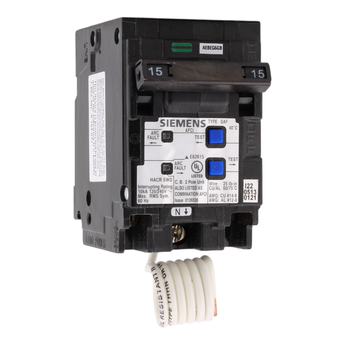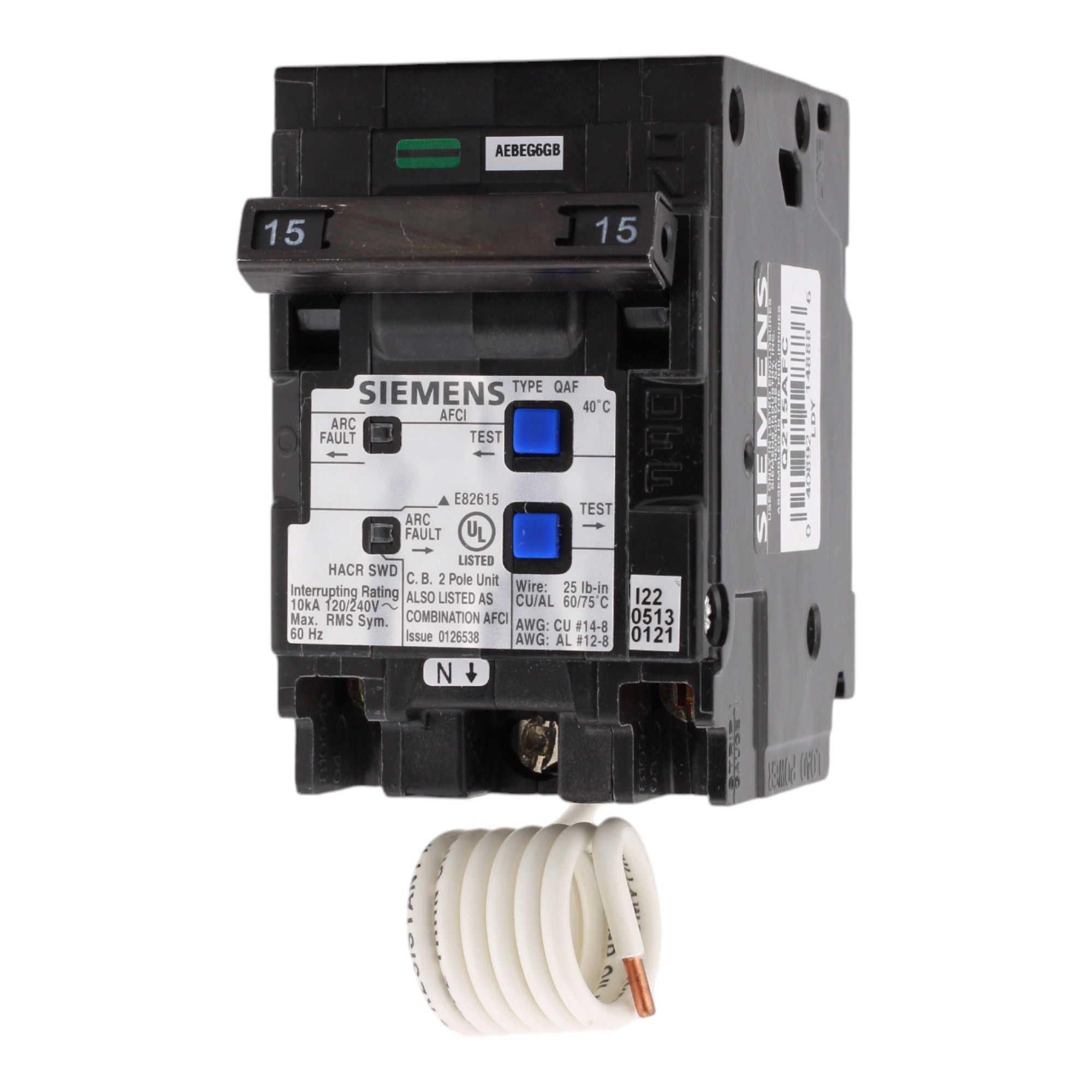 Siemens Q215AFC, 15 Amps, 120/240 Volts, Double Pole, Combination AFCI Circuit Breaker, Plug-In Mount, Pigtail Connection, for Siemens Panels