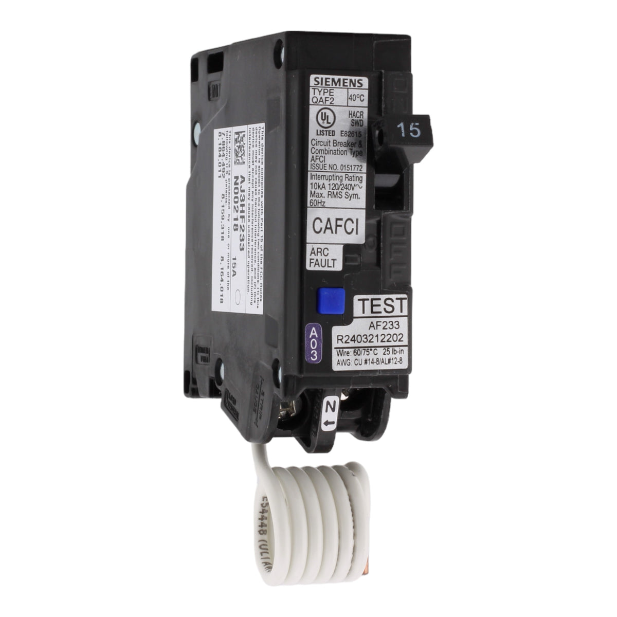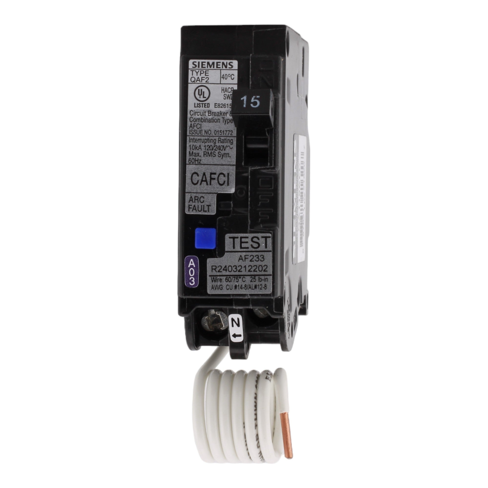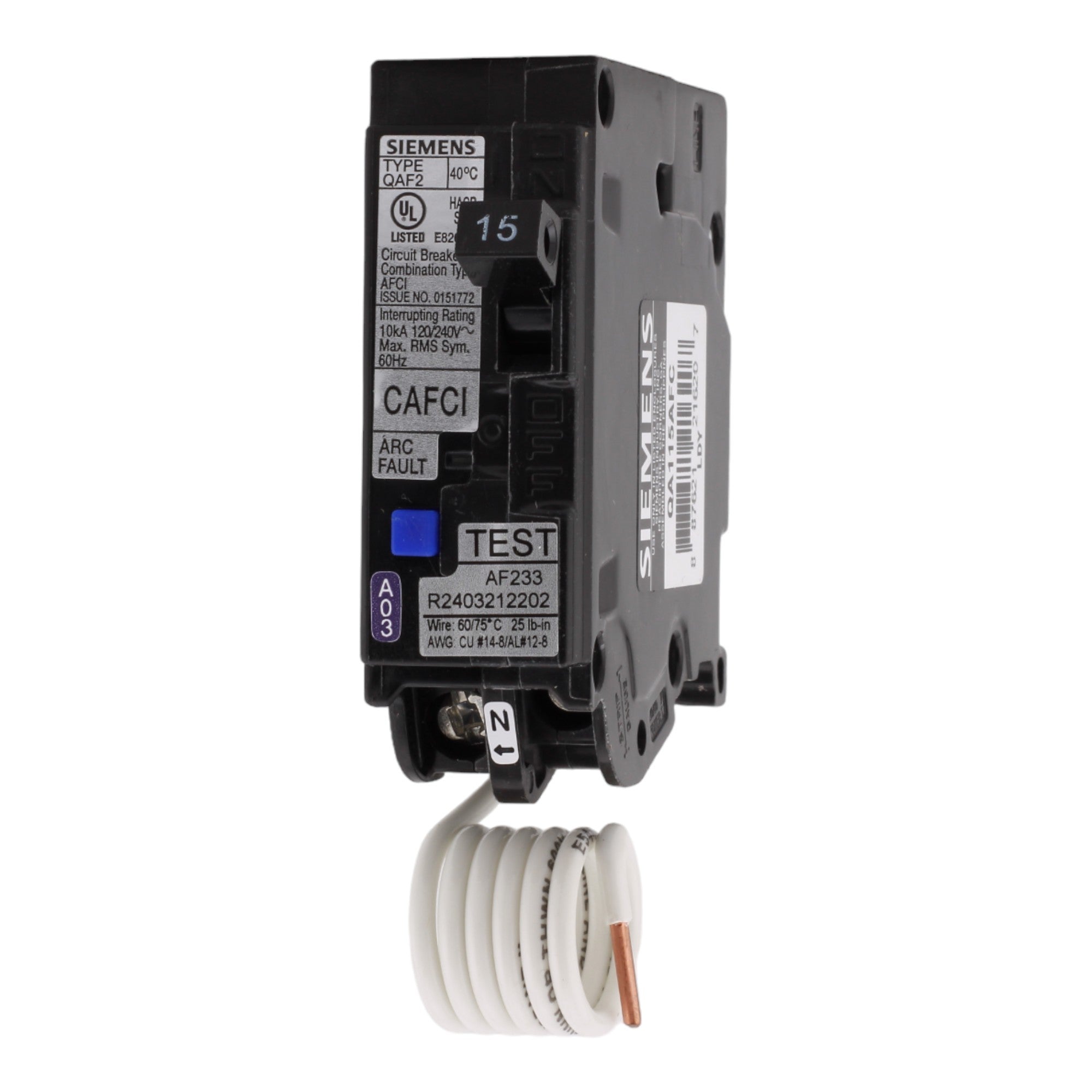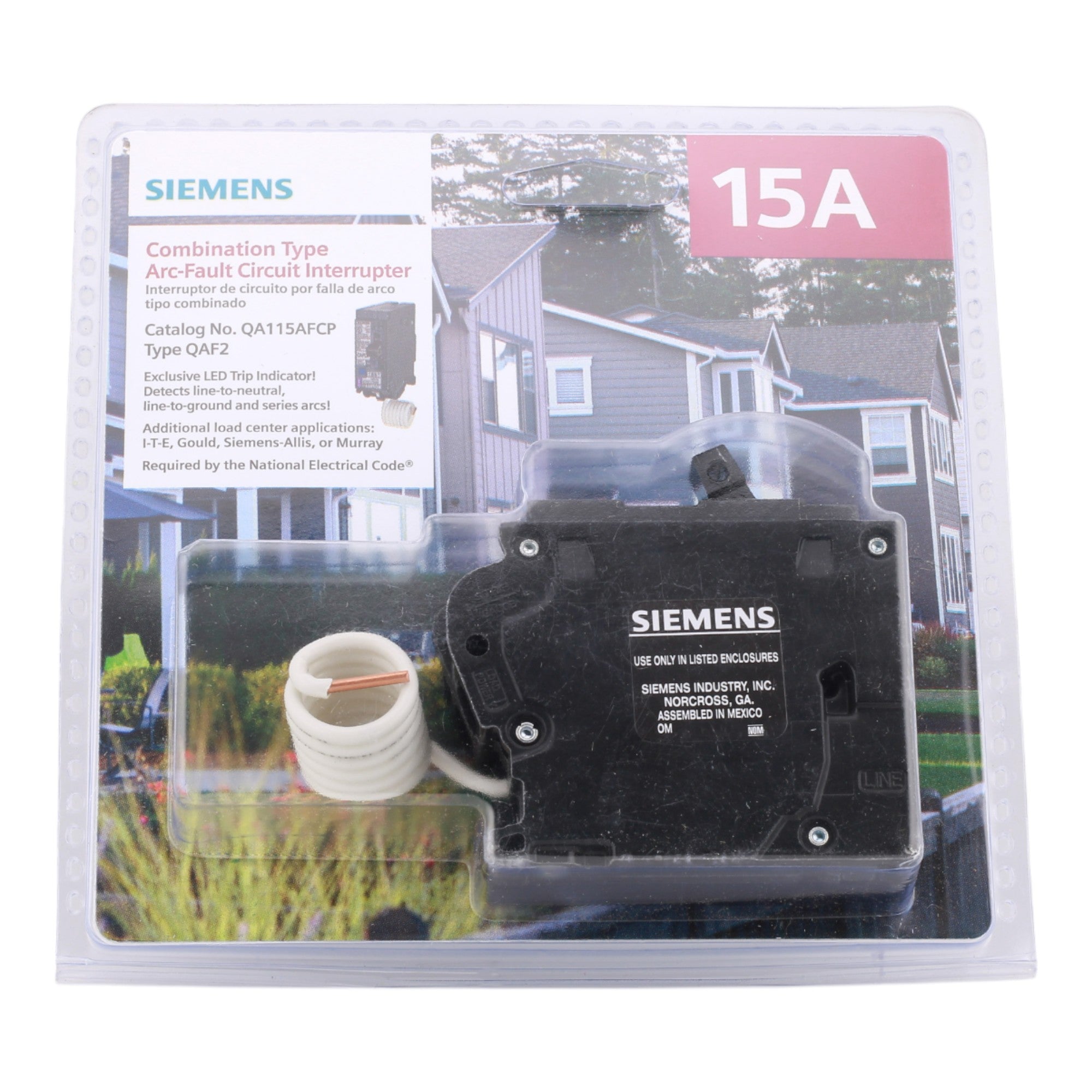 Siemens QA115AFCP 15 Amp Single Pole Combination AFCI Circuit Breaker, 120V, Plug-In, 10 kAIC, UL Listed