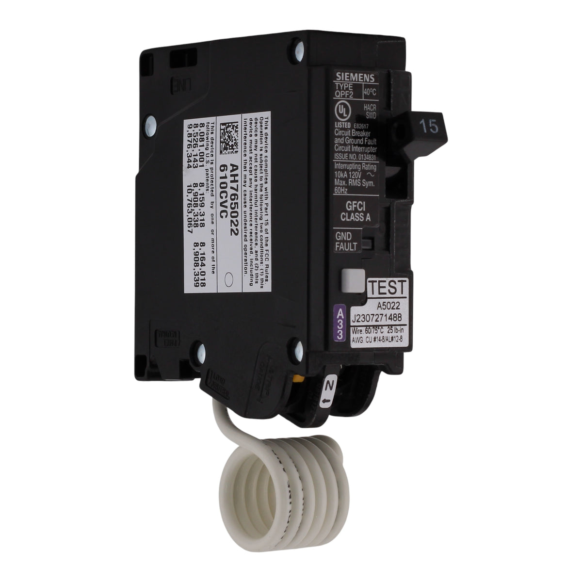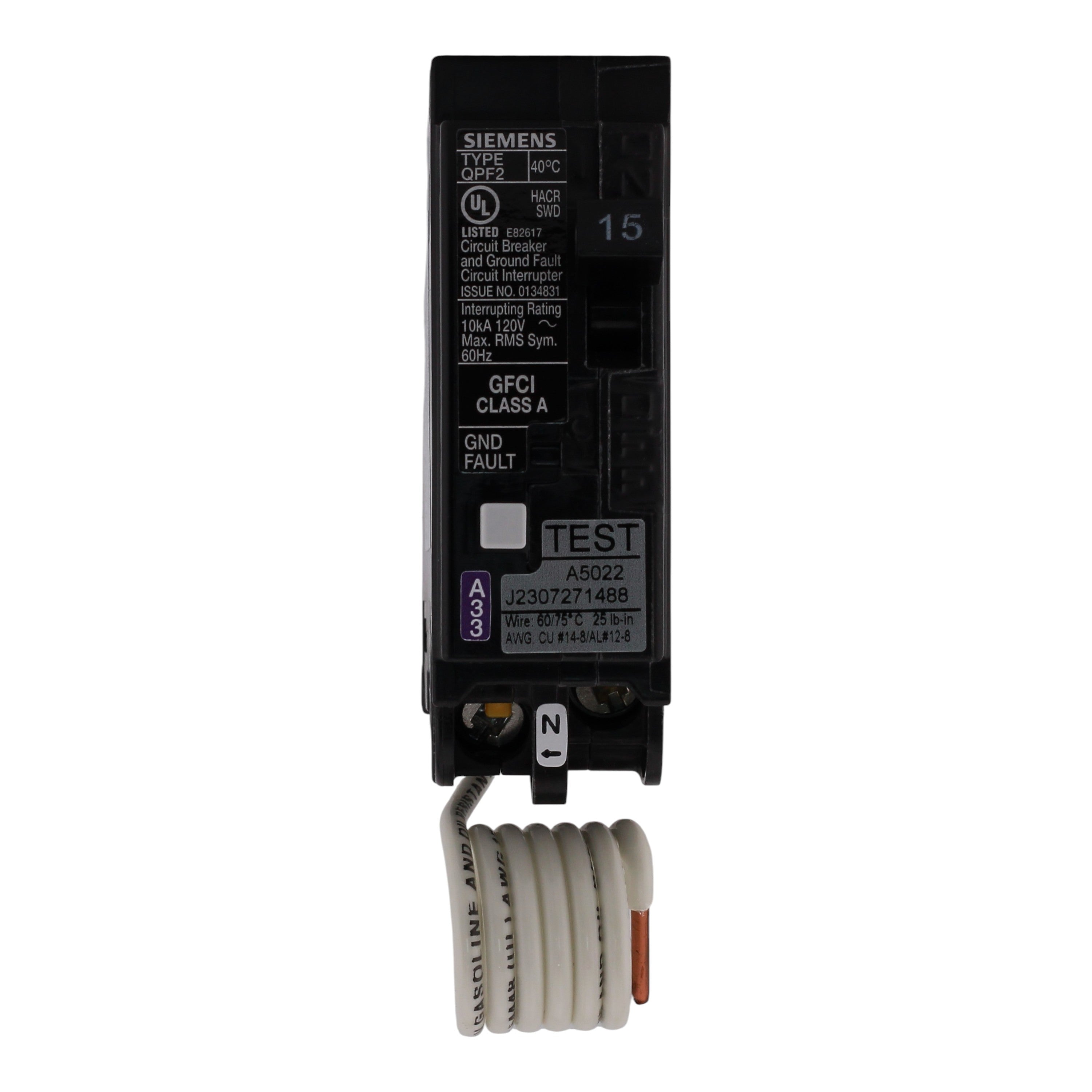Siemens QF115A 15A 1P 120V 10kA GFCI Plug-On Circuit Breaker