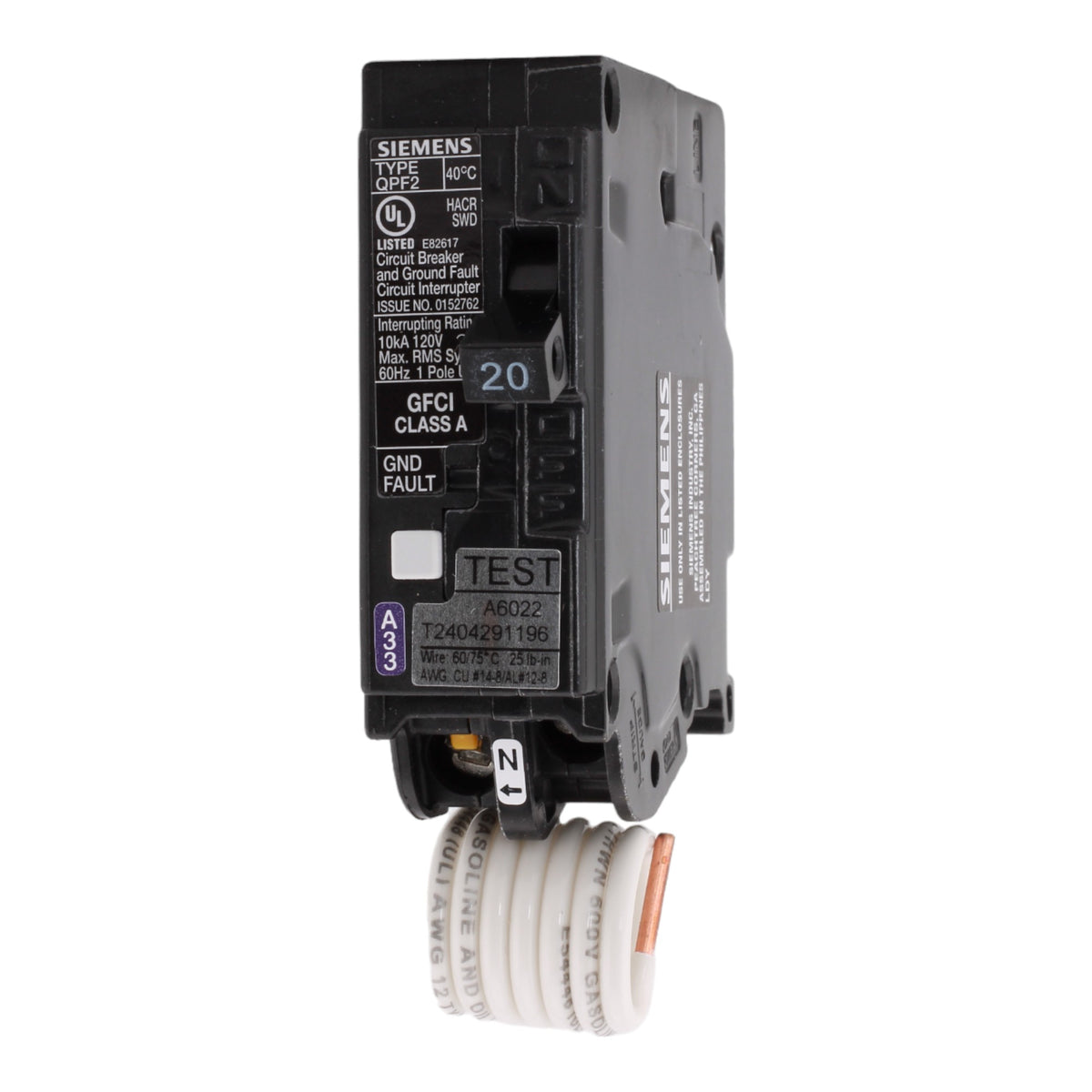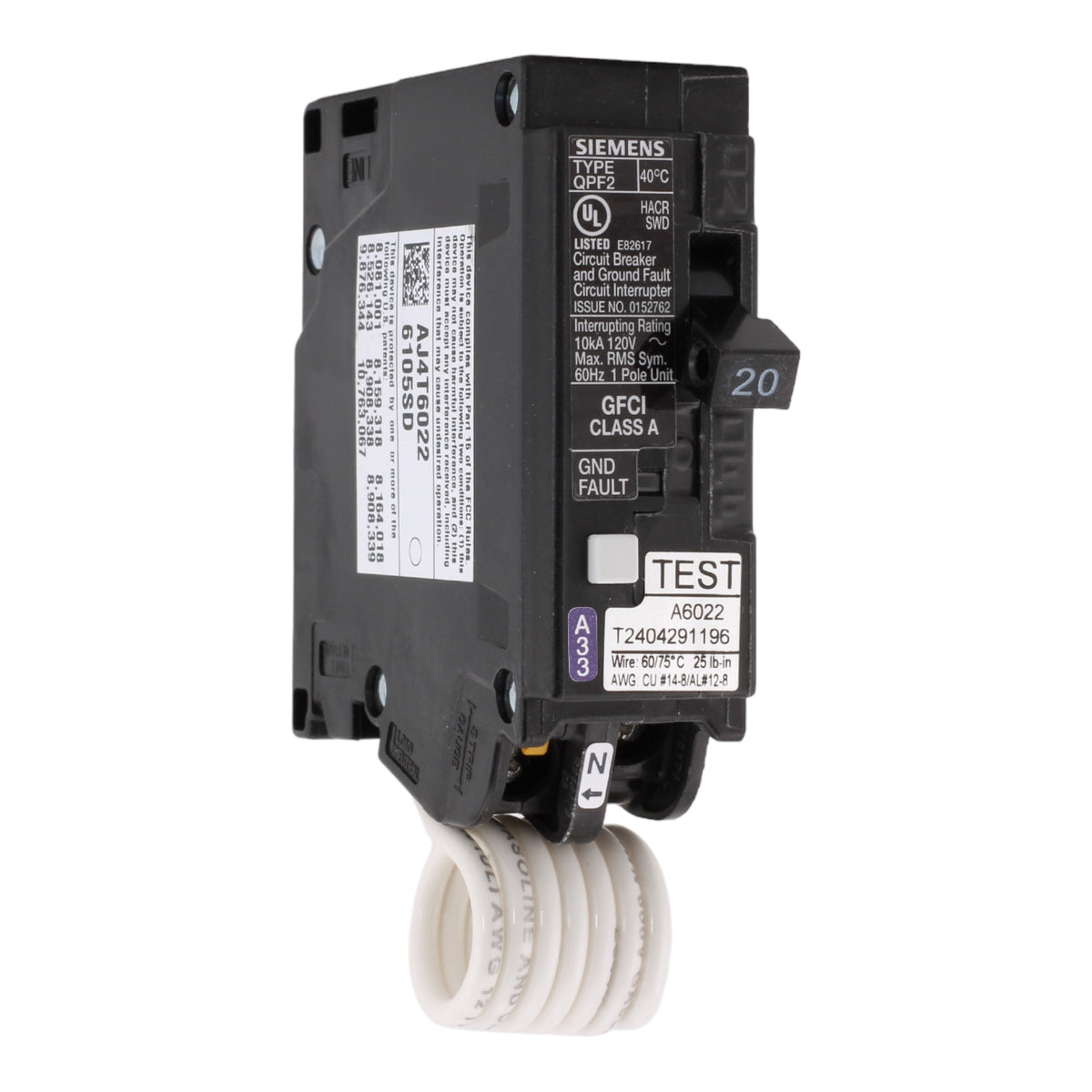 Siemens QF120AP 20 Amps 120 Volts Single-Pole GFCI Ground Fault Circuit Interrupter Pigtail Neutral