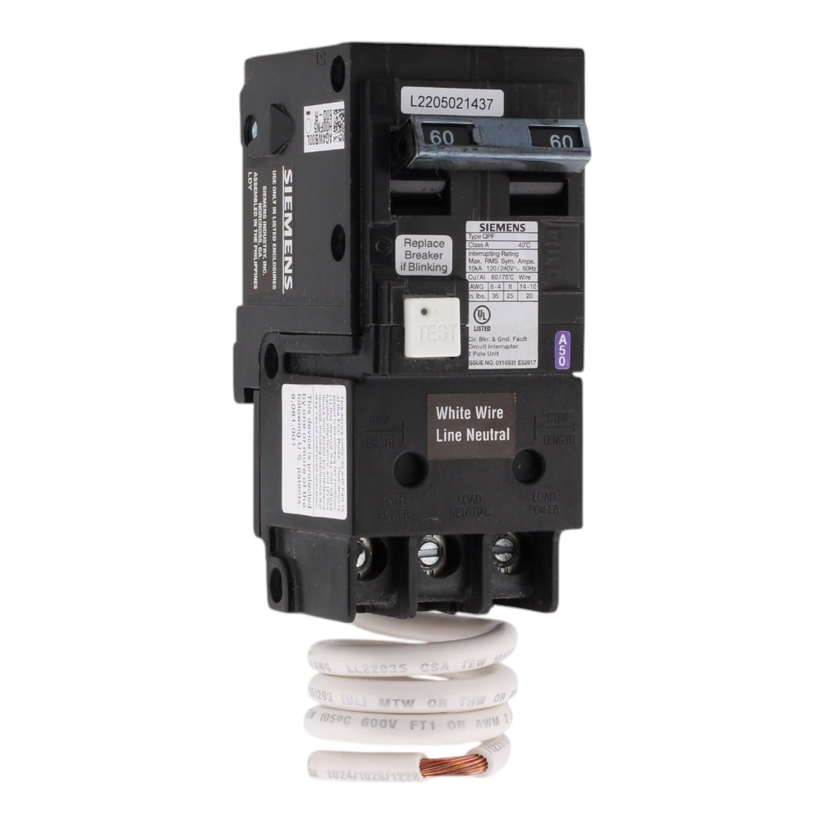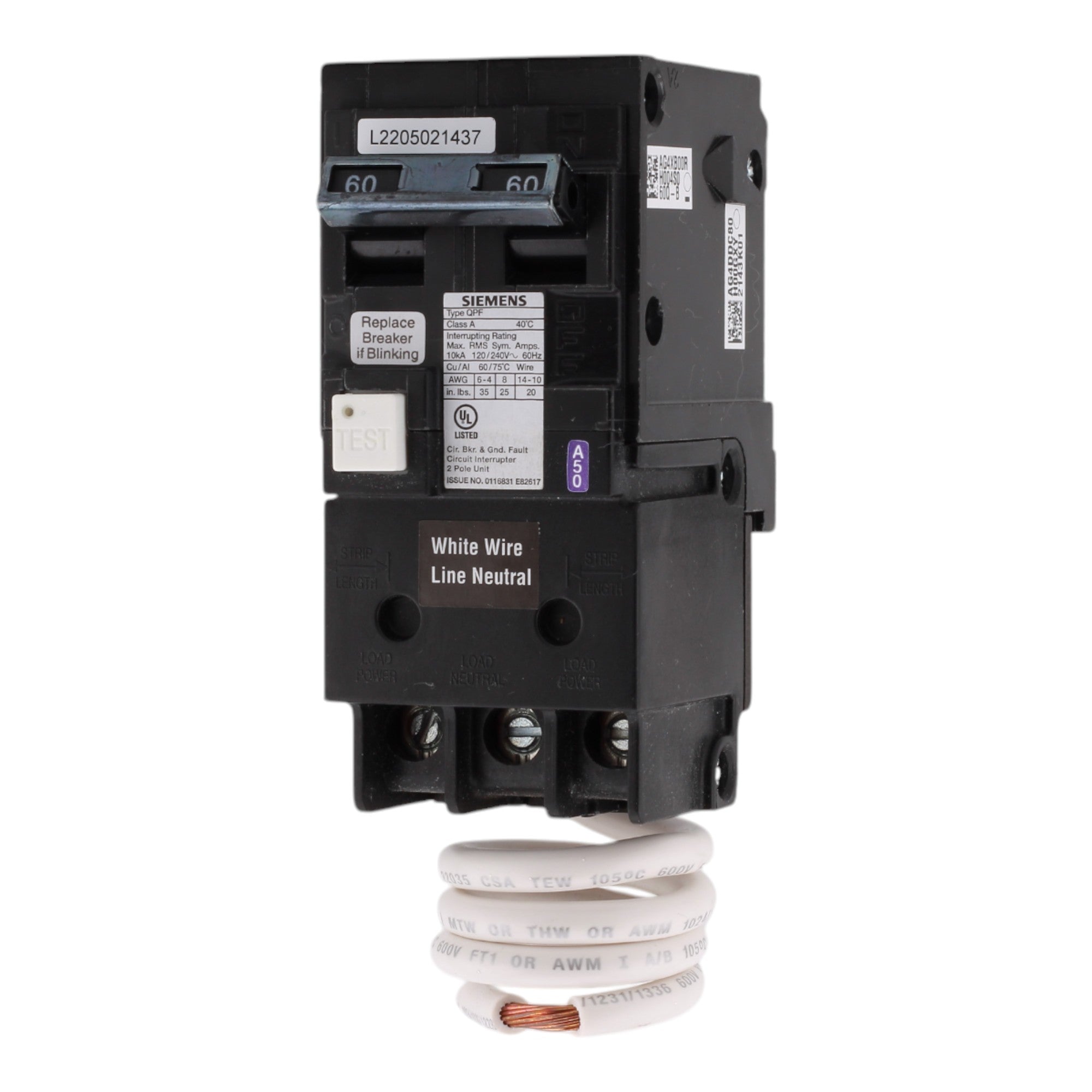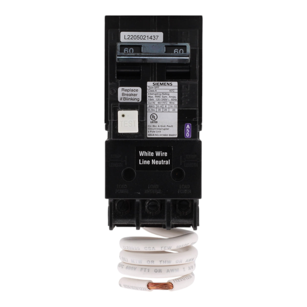 Siemens QF260A 60 Amps 120/240 Volts Two-Pole Ground Fault Circuit Interrupter Pigtail Neutral