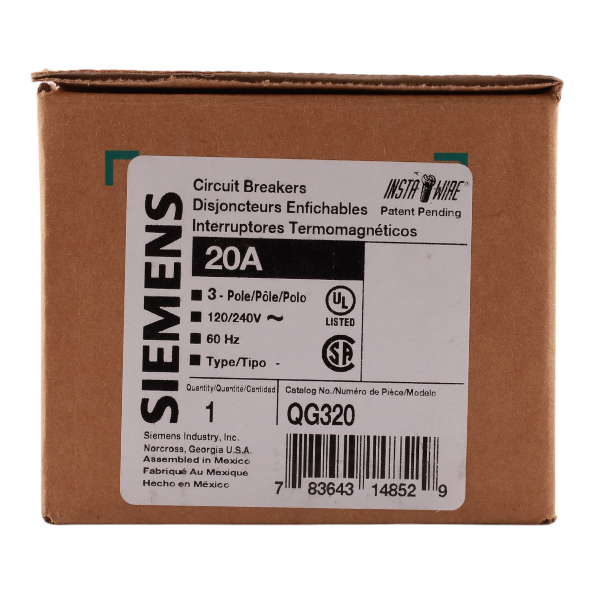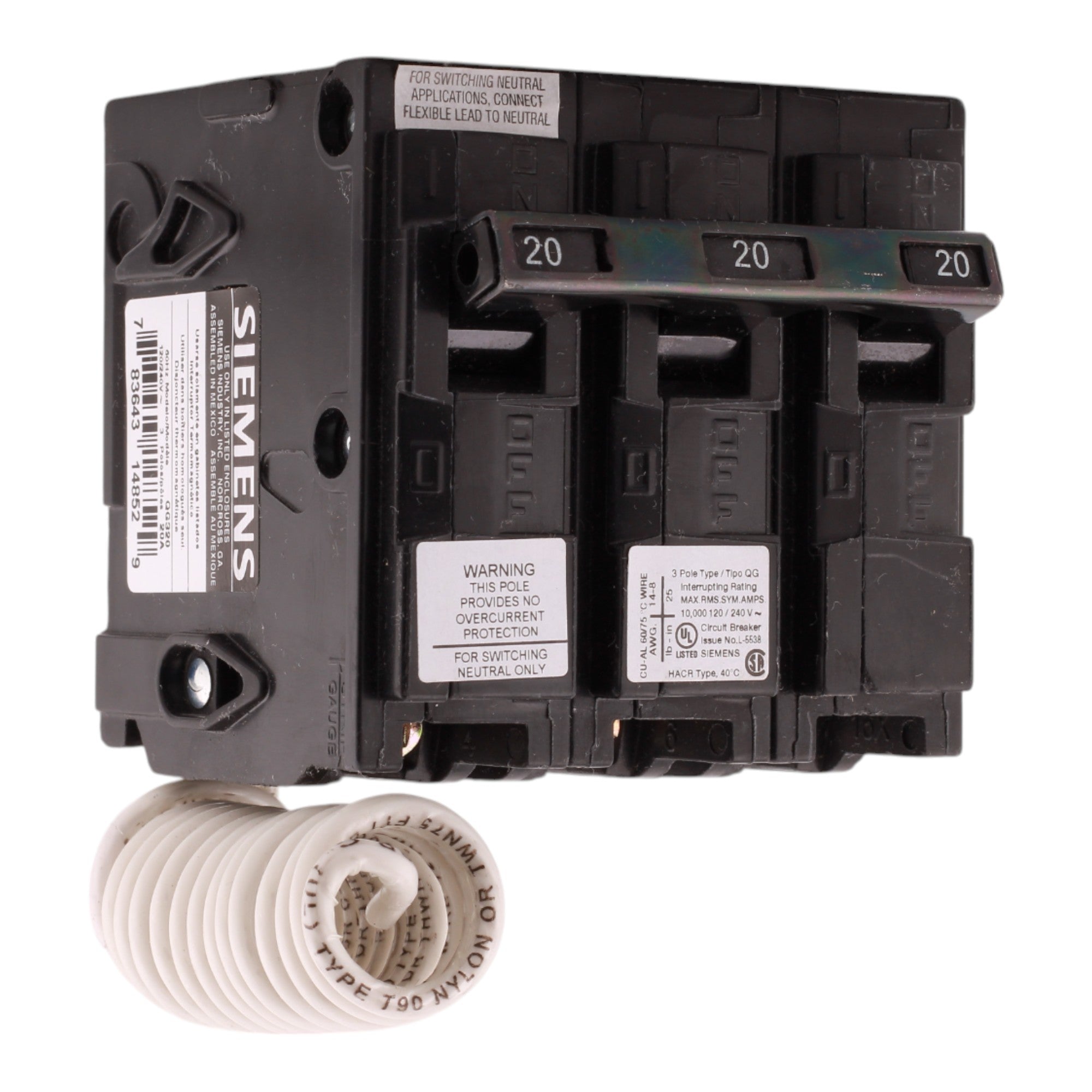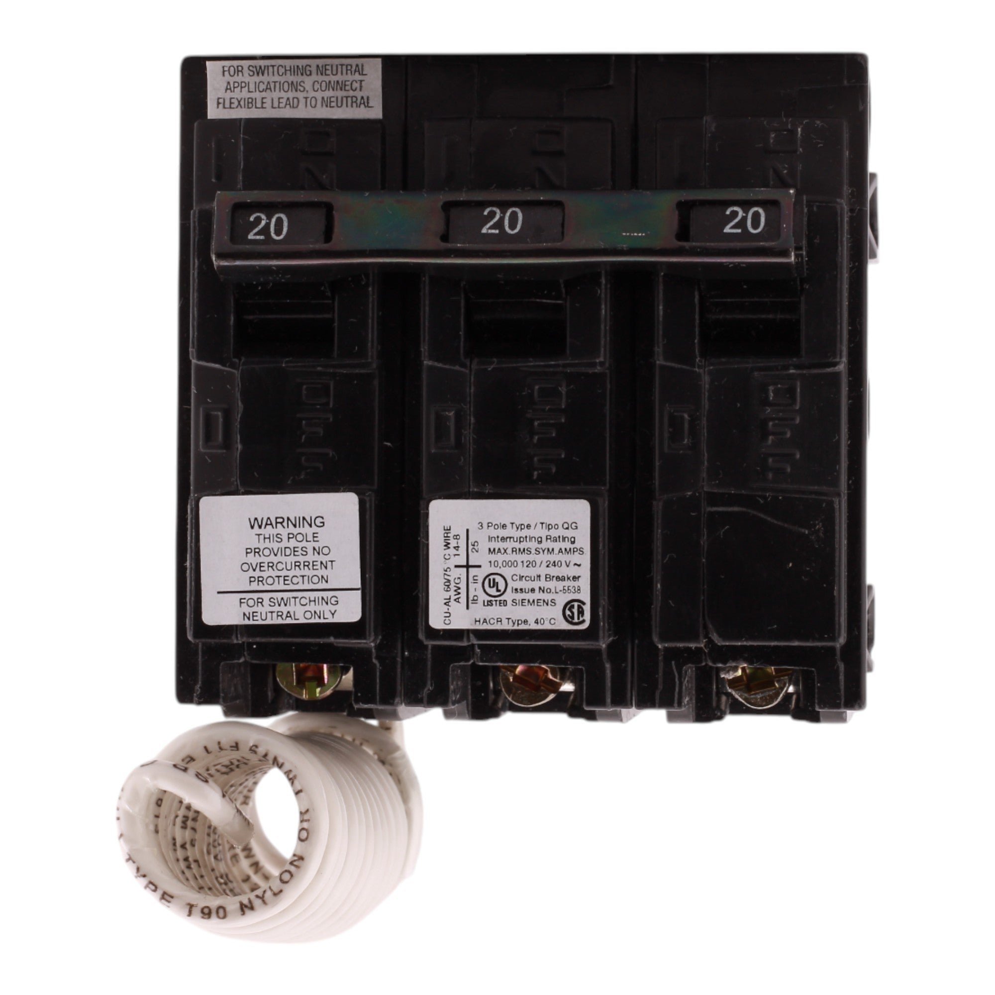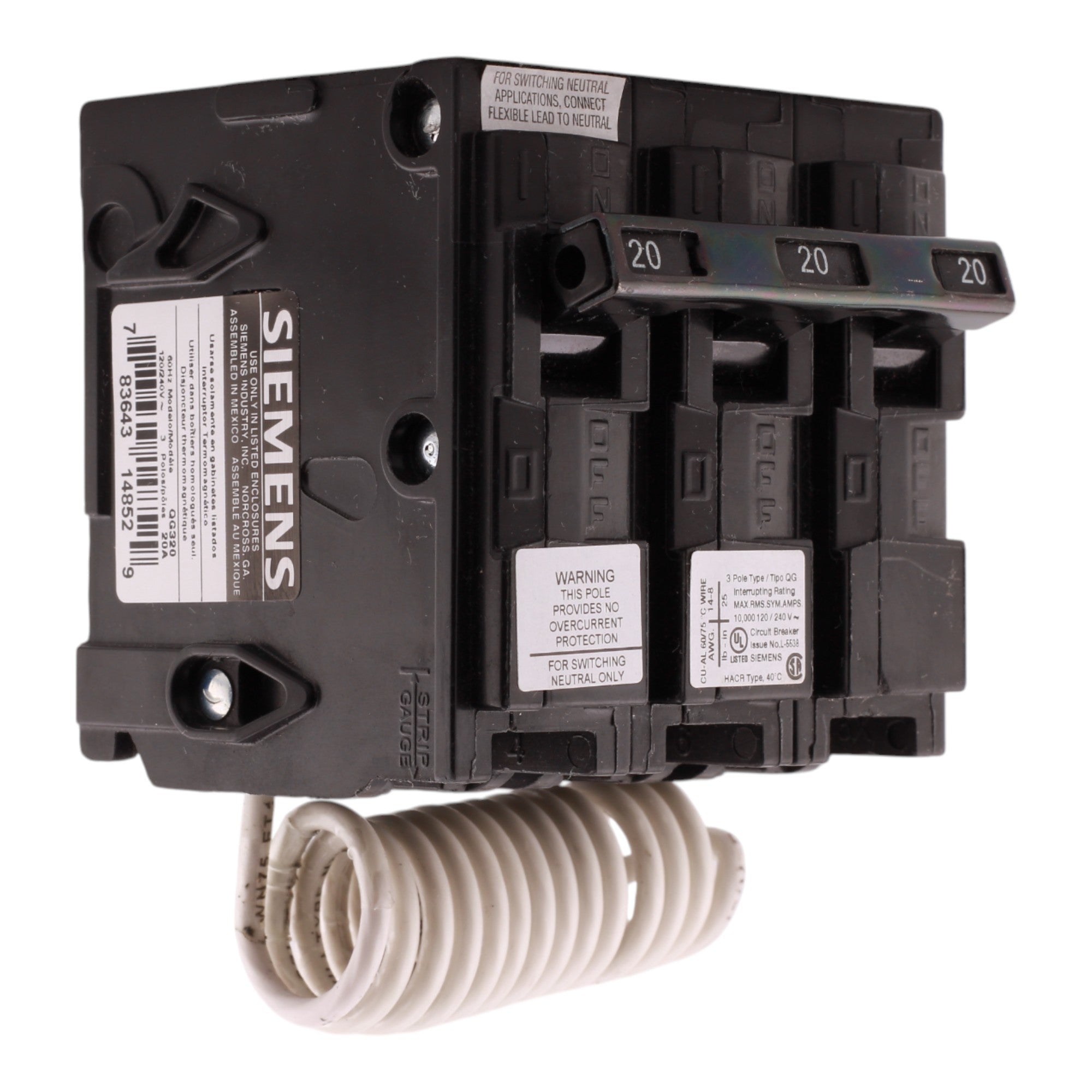 Siemens QG320: 20 Amp 3-Pole Switching Neutral Circuit Breaker, 120/240V, 10kA, UL listed.