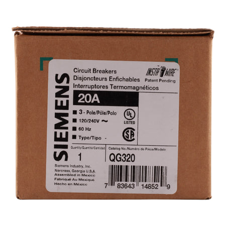 This Siemens QG320 switching neutral circuit breaker provides reliable 20A, 3-pole protection for 120/240V circuits in Siemens loadcenters. With thermal-magnetic trip and a 10kA interrupt rating, it ensures enhanced safety for residential and commercial electrical distribution applications.