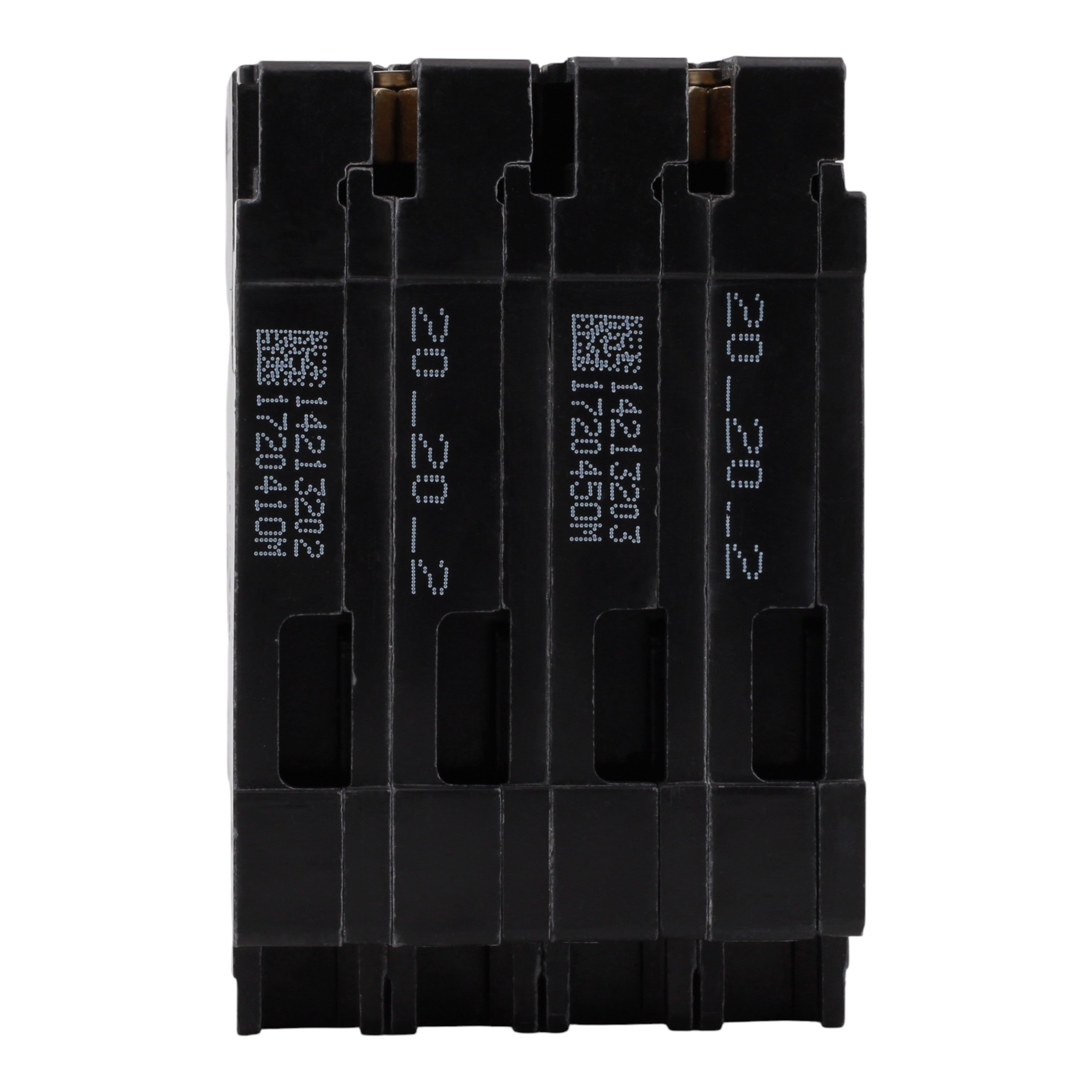 This Siemens Q22020CT2 duplex circuit breaker provides reliable 20A, 2-pole thermal magnetic protection for 120/240V circuits in QT loadcenters. Featuring two independent 20A 1-pole breakers in a single 2-pole space, it offers space-saving installation and enhanced overcurrent protection for residential and light commercial applications.