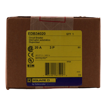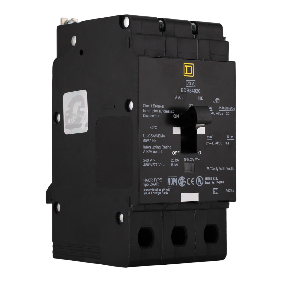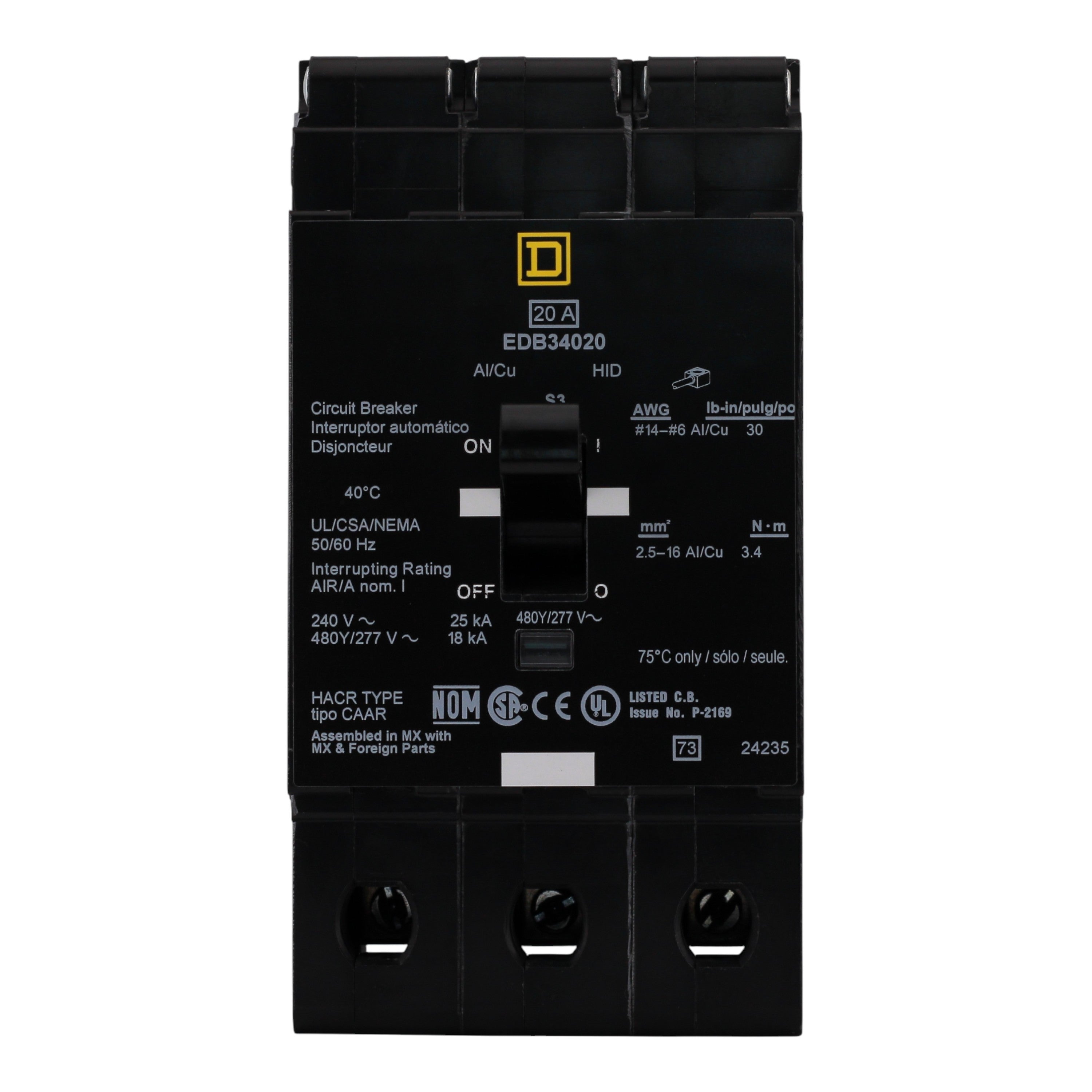 Square D E-Frame EDB34020 20A 3P 480Y/277V 25kA Bolt-On Circuit Breaker