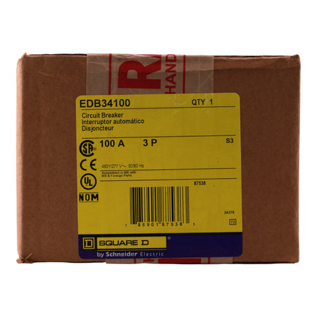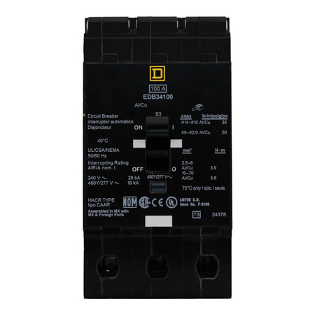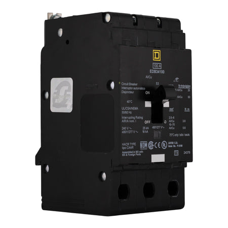 Square D E-Frame EDB34100 100A 3P 480Y/277V Thermal-Magnetic Bolt-On Circuit Breaker