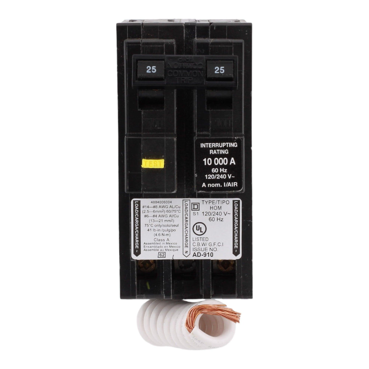 Square D HOM225GFI 25 Amp Double Pole Ground Fault Circuit Breaker - GFCI, 120/240V, Plug-In, UL Listed