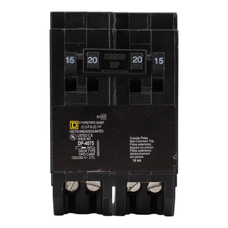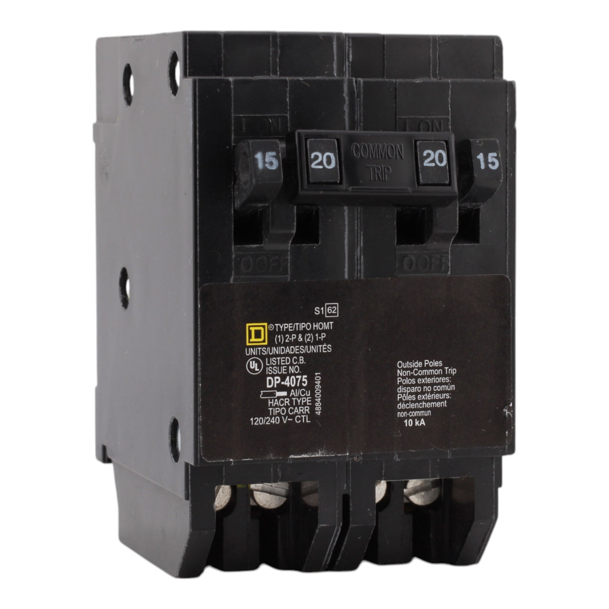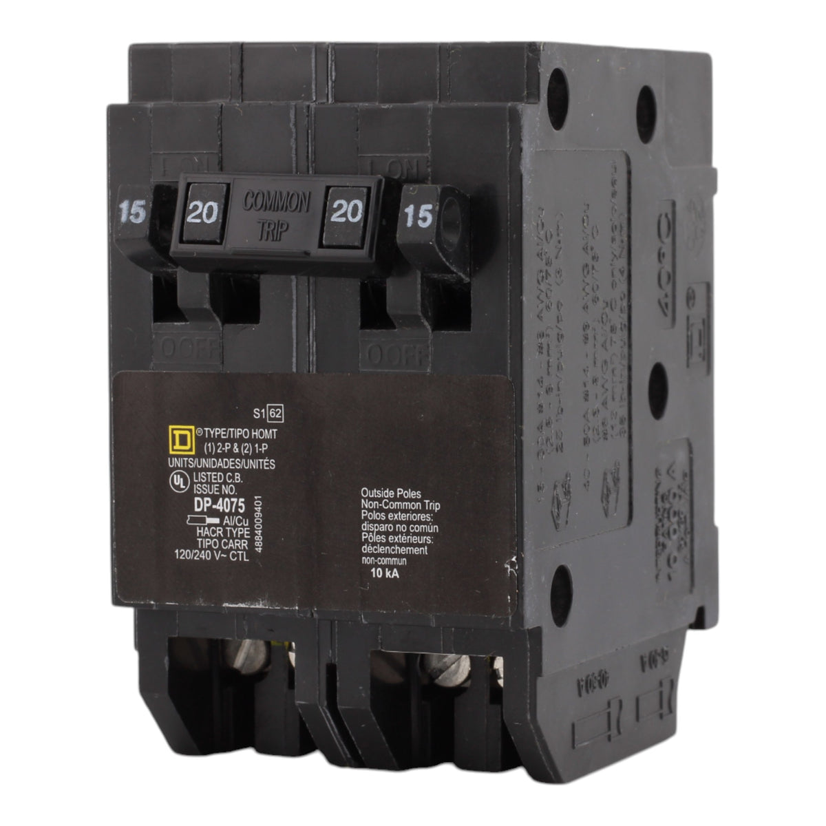 Square D HOMT1515220, 15A/20A, 120/240V, Quad Tandem Circuit Breaker, Plug-In, for Homeline Load Centers