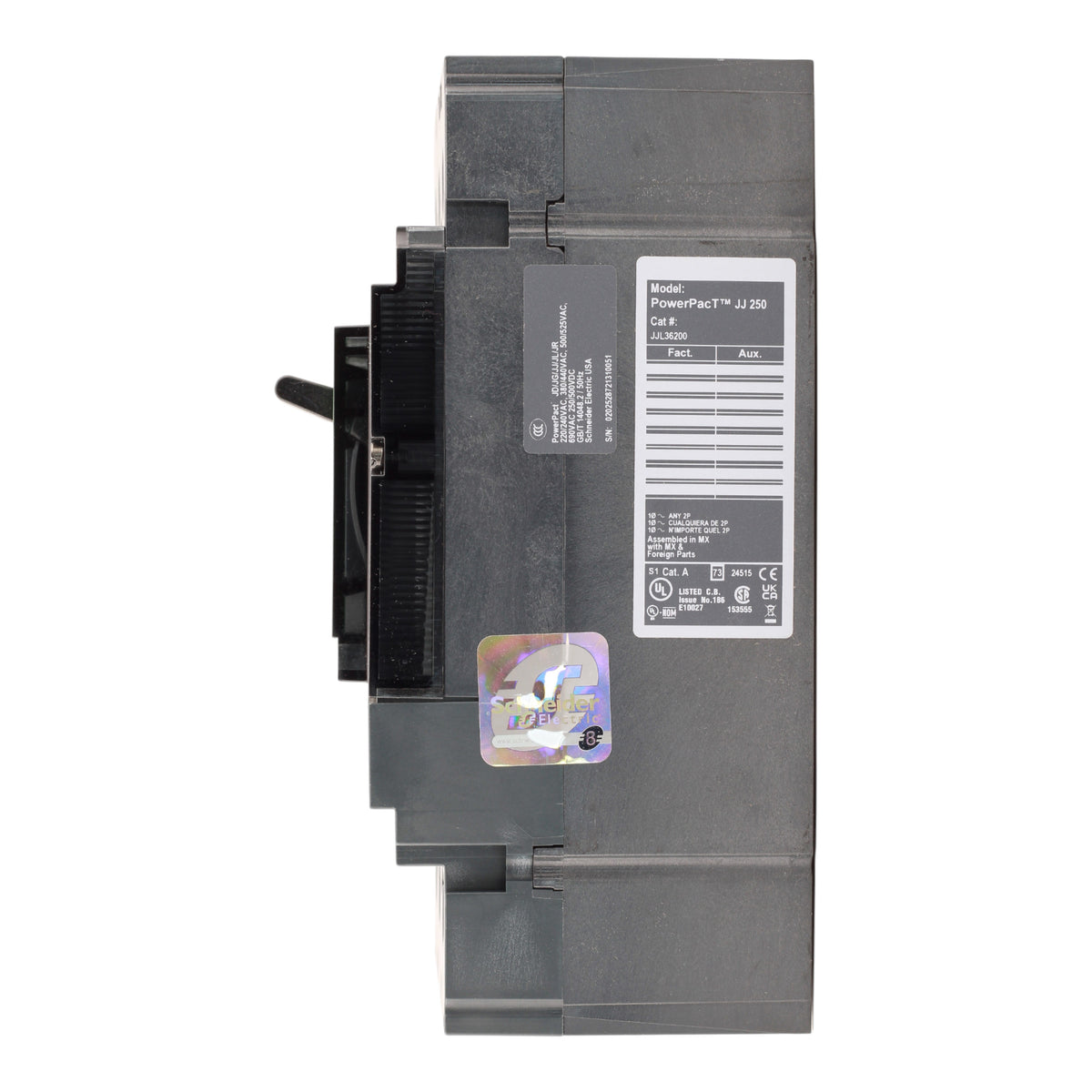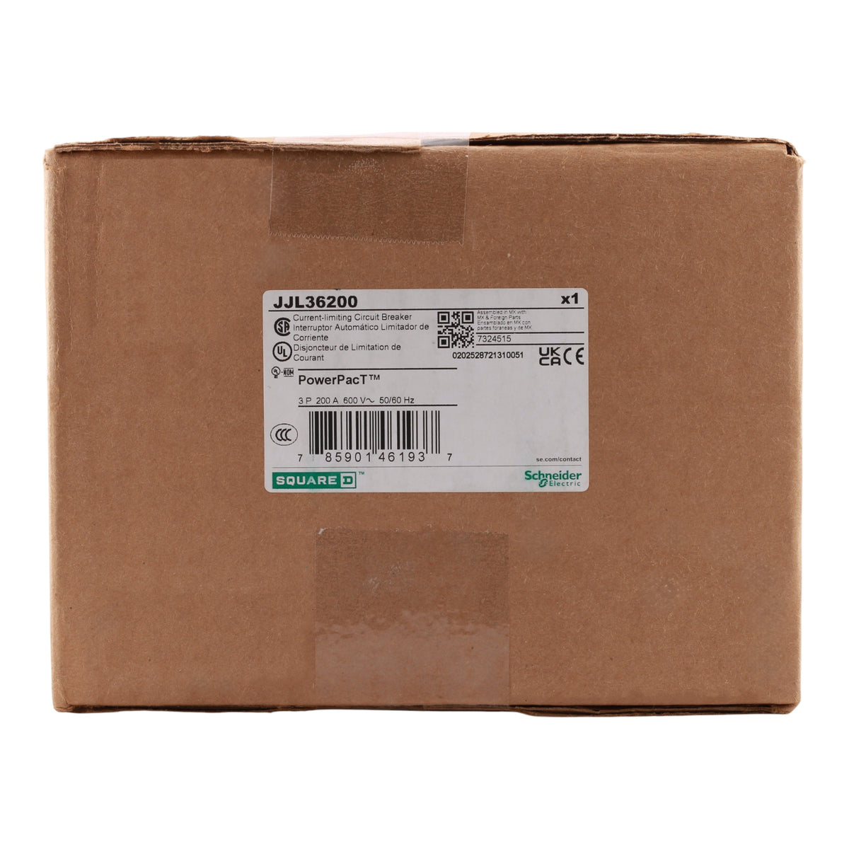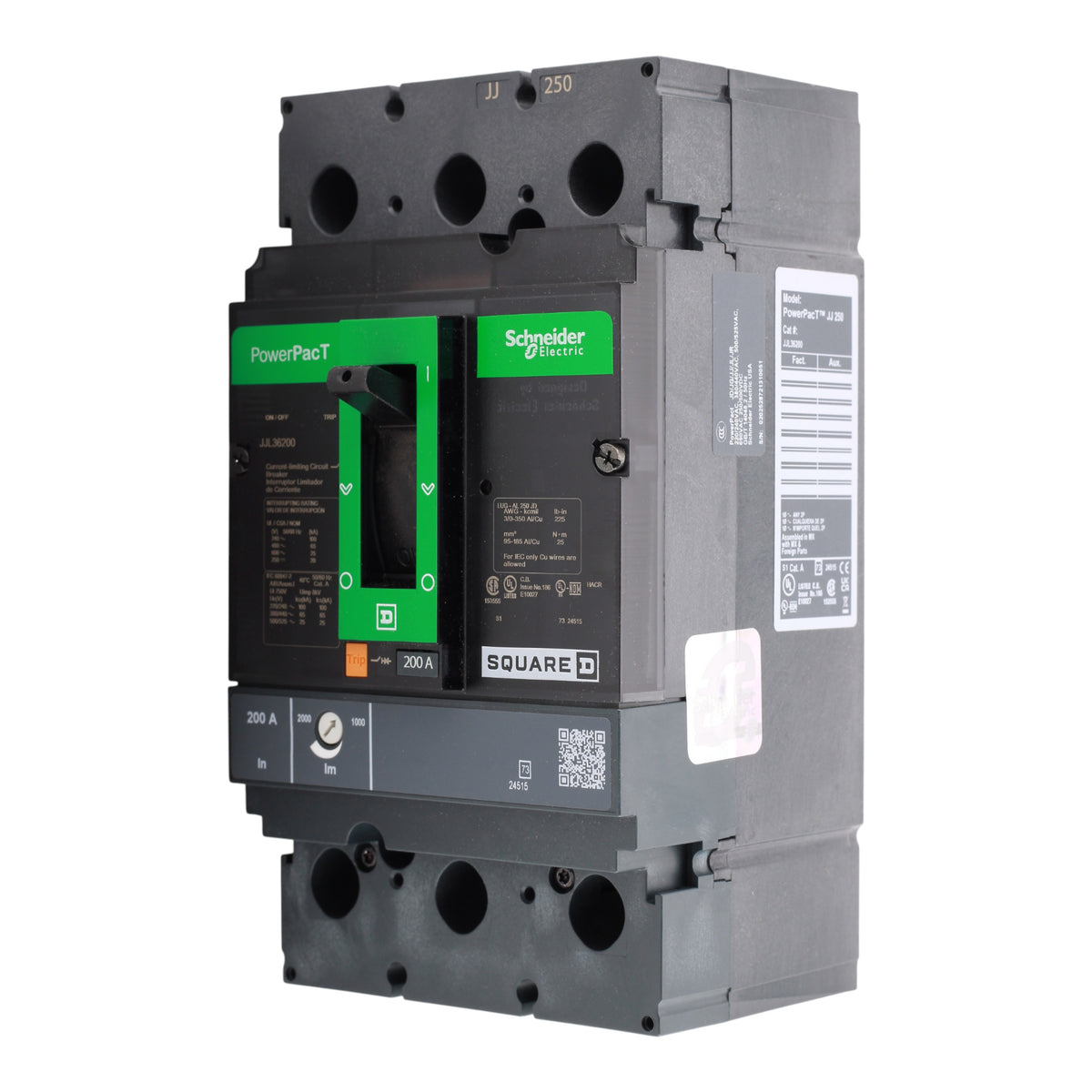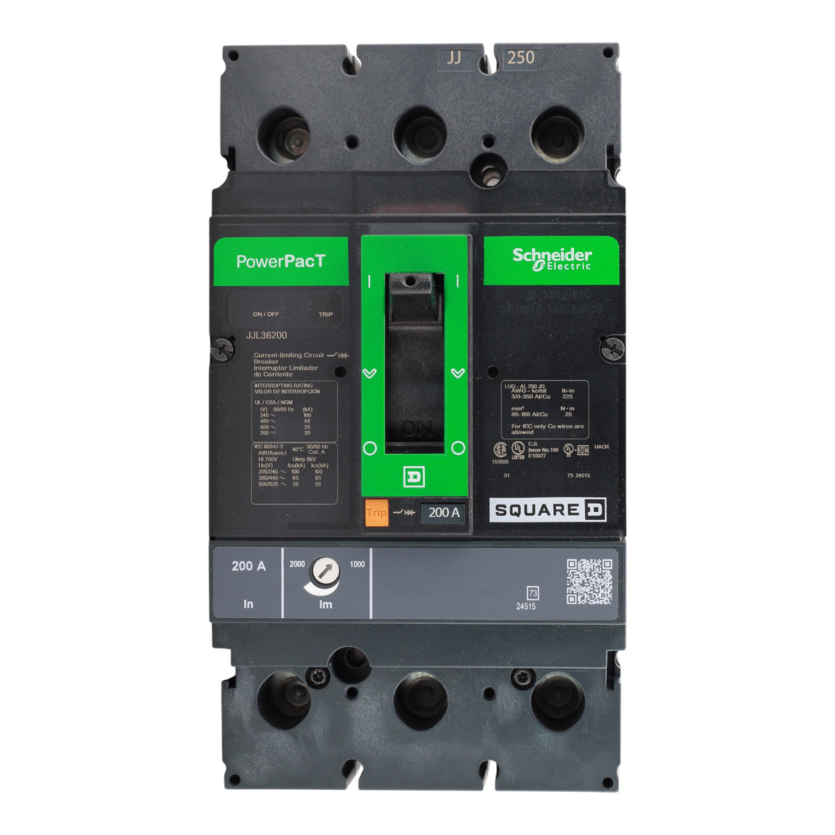 This Schneider Electric PowerPacT JJL36200 circuit breaker provides reliable 200A, 3-pole thermal-magnetic protection for 600V circuits in PowerPacT J-Frame compatible panels. With a 25kA interrupting capacity, it ensures robust overload and short-circuit protection for industrial and commercial applications.