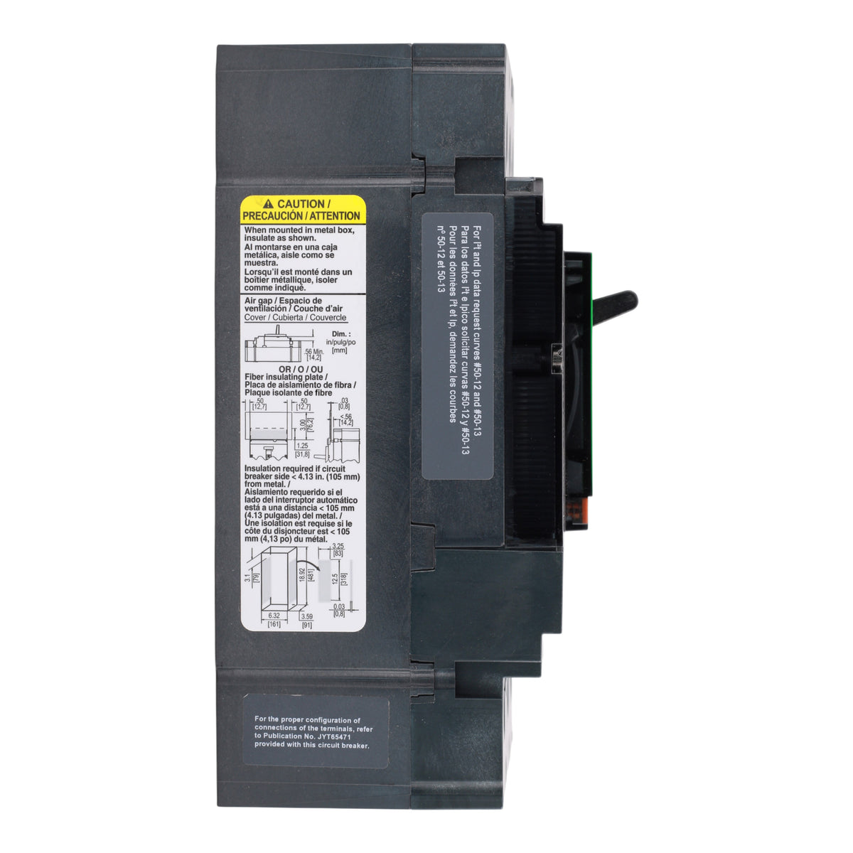 Square D JJL36200: 200 Amp 3-Pole Thermal-Magnetic Circuit Breaker, 600V, 25kA, lugs, UL listed, CSA, NOM, IEC, CE.