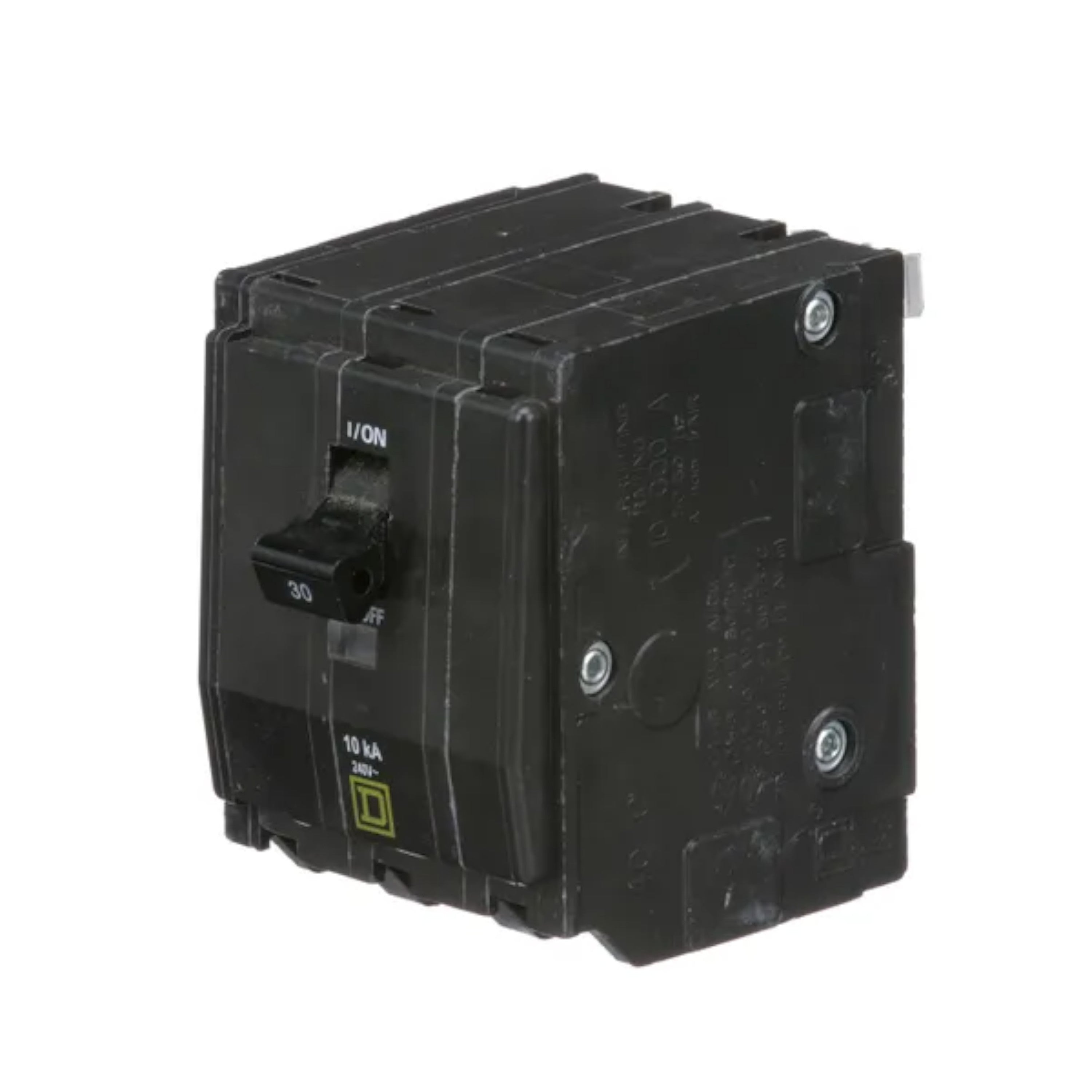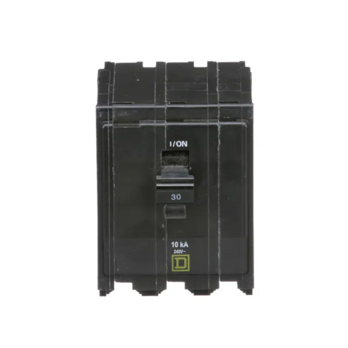 Square D QO330: 30 Amp 3-Pole standard thermal magnetic circuit breaker, 120/240V, 10kA, plug-on, UL listed.