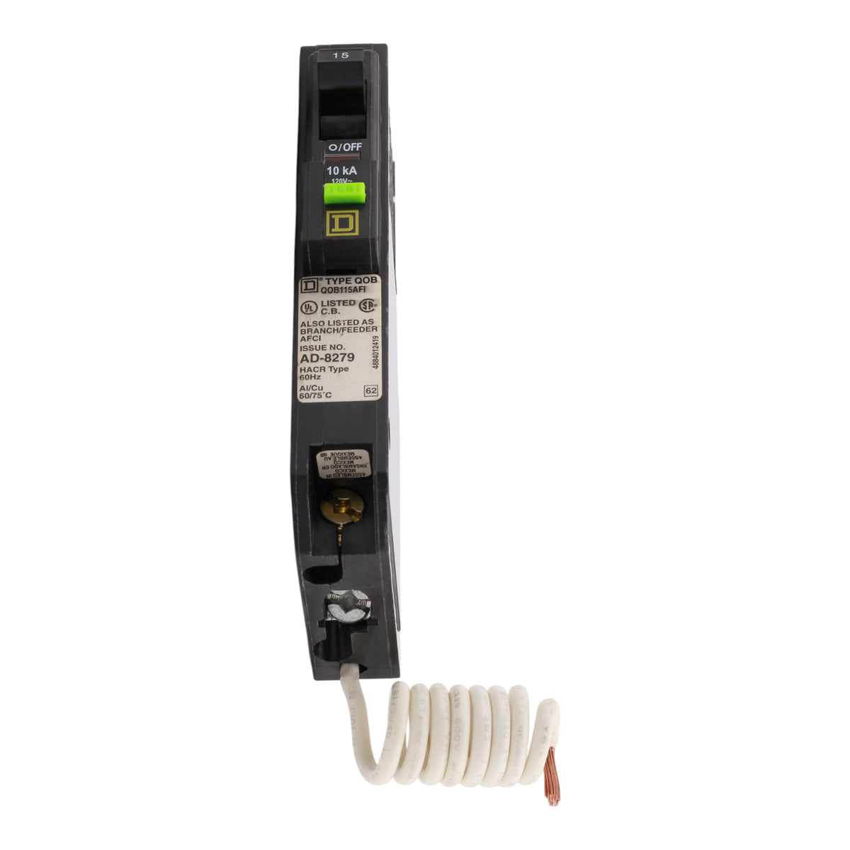 - Certifications: UL Listed, CSA Certified, HACR Rated This Square D QOB115AFI pigtail neutral circuit breaker provides reliable 15A, 1-pole AFCI protection for 120V circuits in QO loadcenters. With arc-fault detection, it ensures enhanced safety for residential and commercial applications.