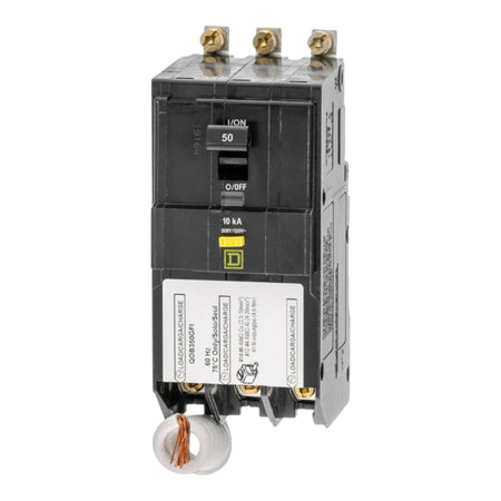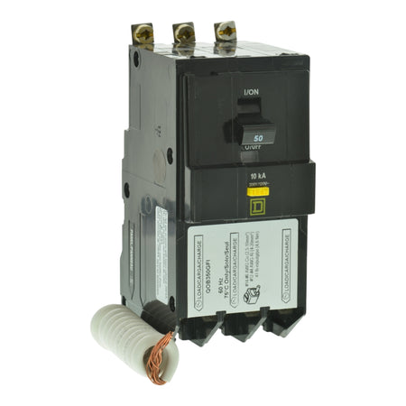 This Square D QOB350GFI pigtail neutral circuit breaker provides reliable 50 Amp, 3-Pole ground fault protection for 208Y/120V circuits in QO loadcenters. With 6mA ground fault detection and bolt-on installation, it ensures enhanced safety for commercial and residential applications.